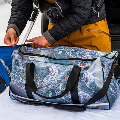 Every trip starts with a story, and this bag puts your favorite mountain at the center of it. Durable, roomy, and printed with the trail map that made you fall in love with winter.”