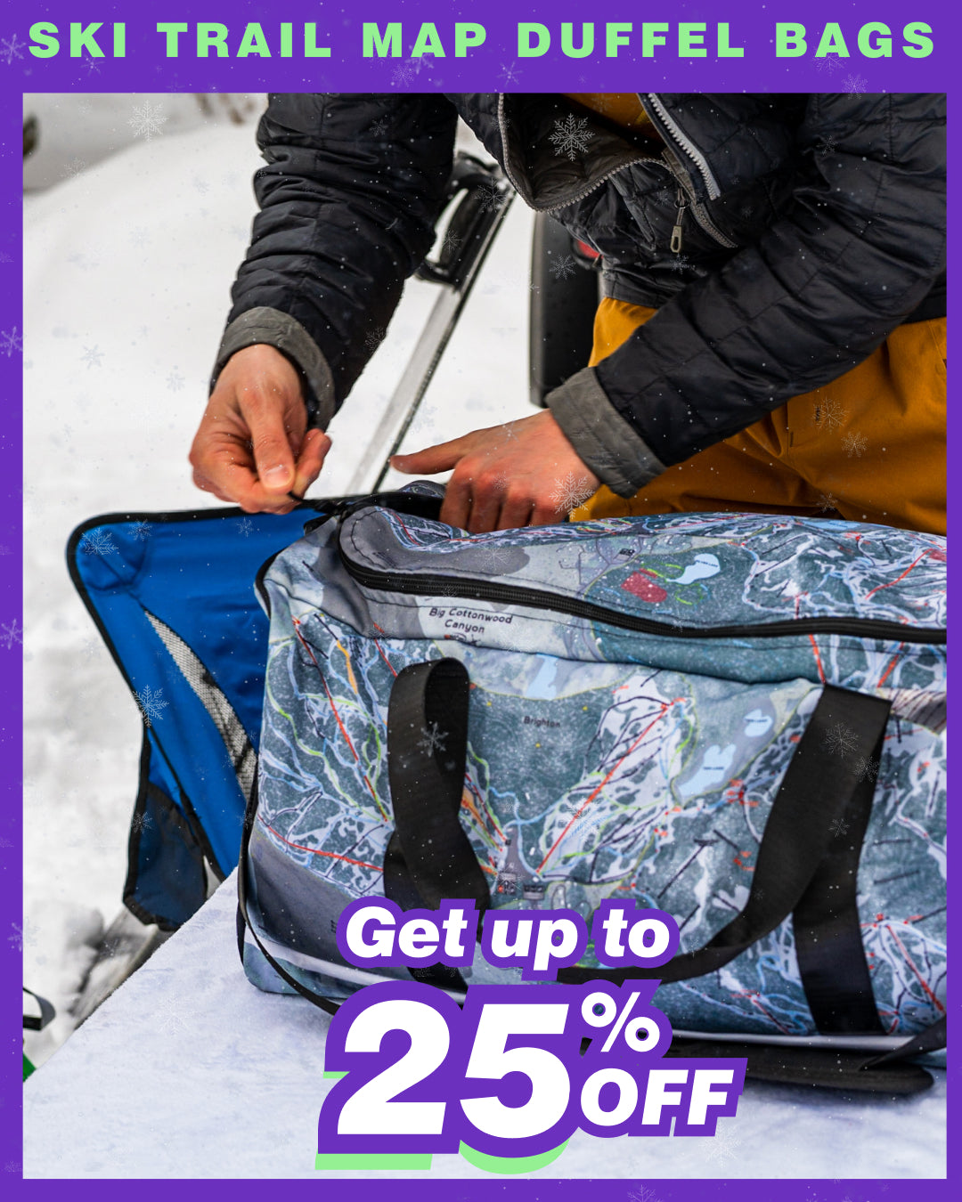 Every trip starts with a story, and this bag puts your favorite mountain at the center of it. Durable, roomy, and printed with the trail map that made you fall in love with winter.”