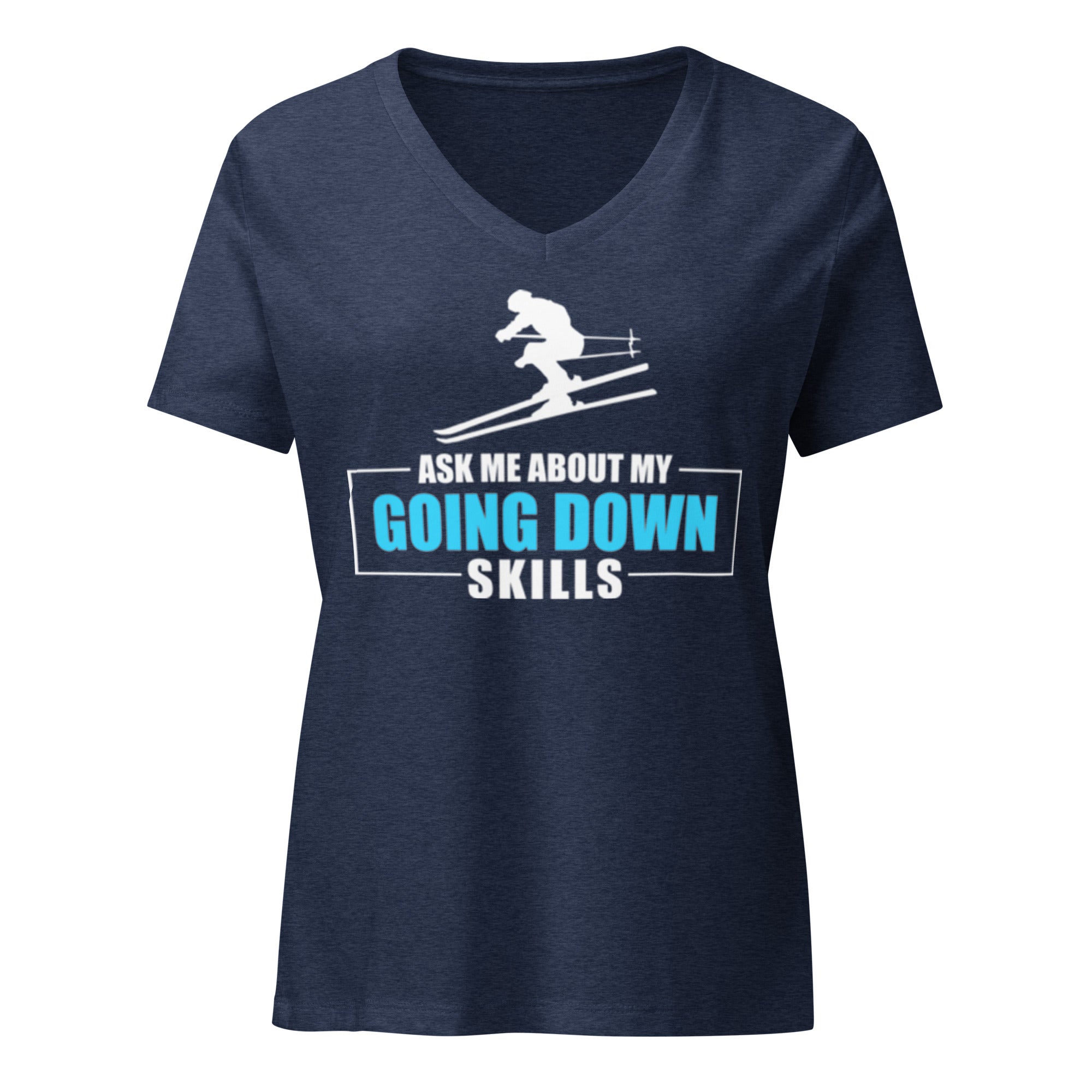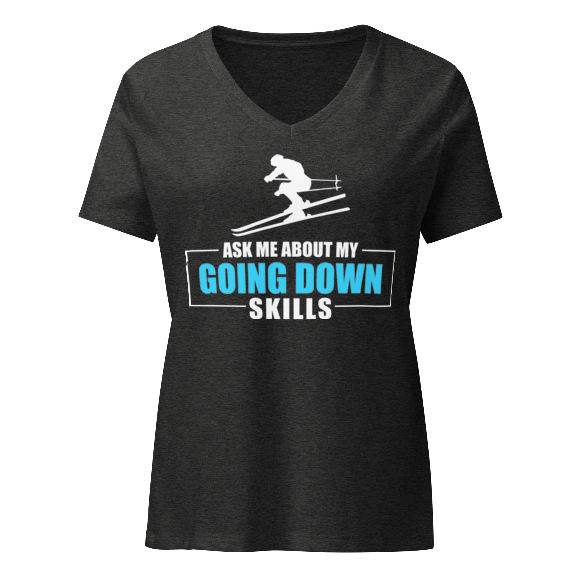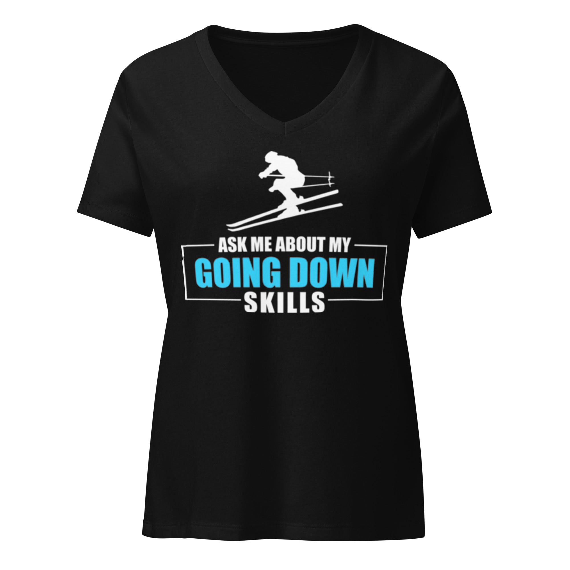 • Ask Me About My Going Down Skills - Ski Women’s relaxed v-neck t-shirt