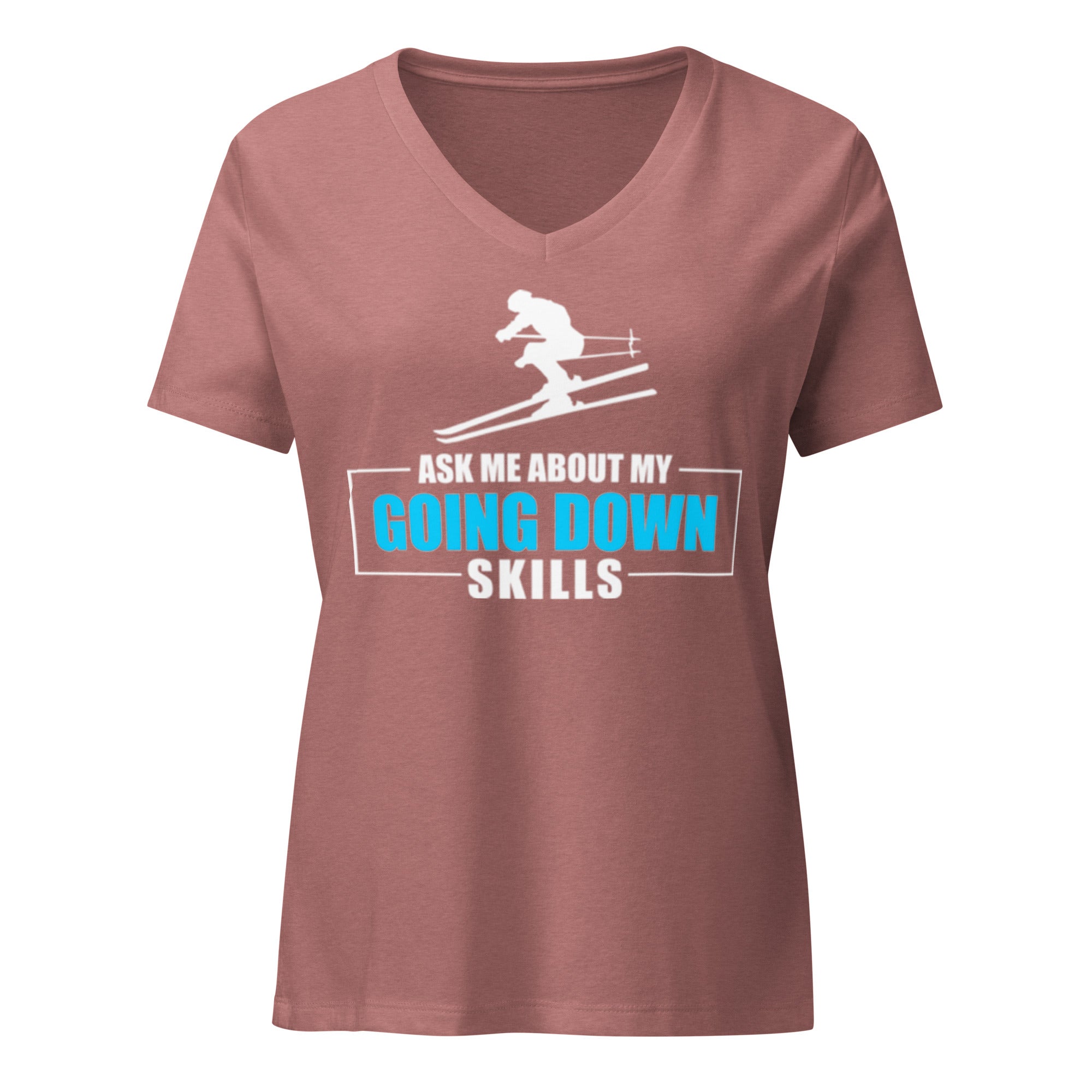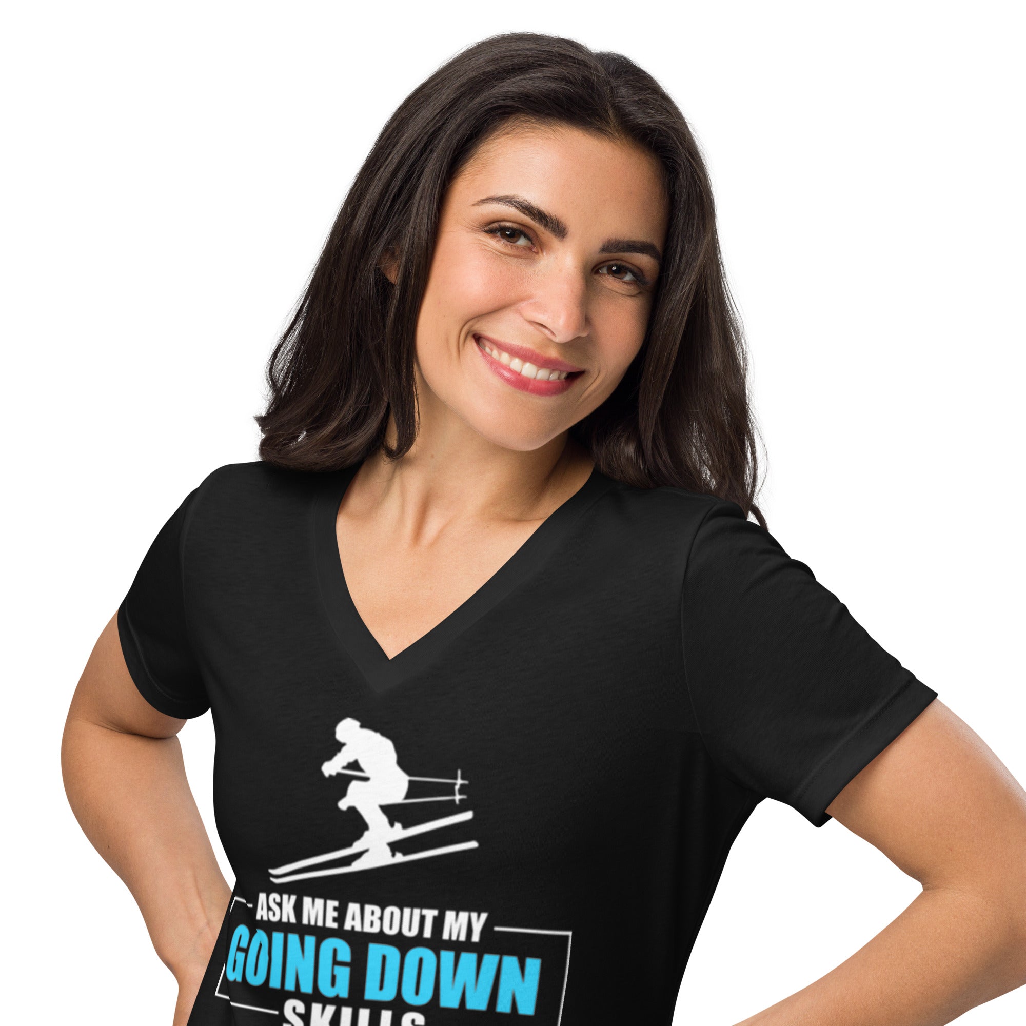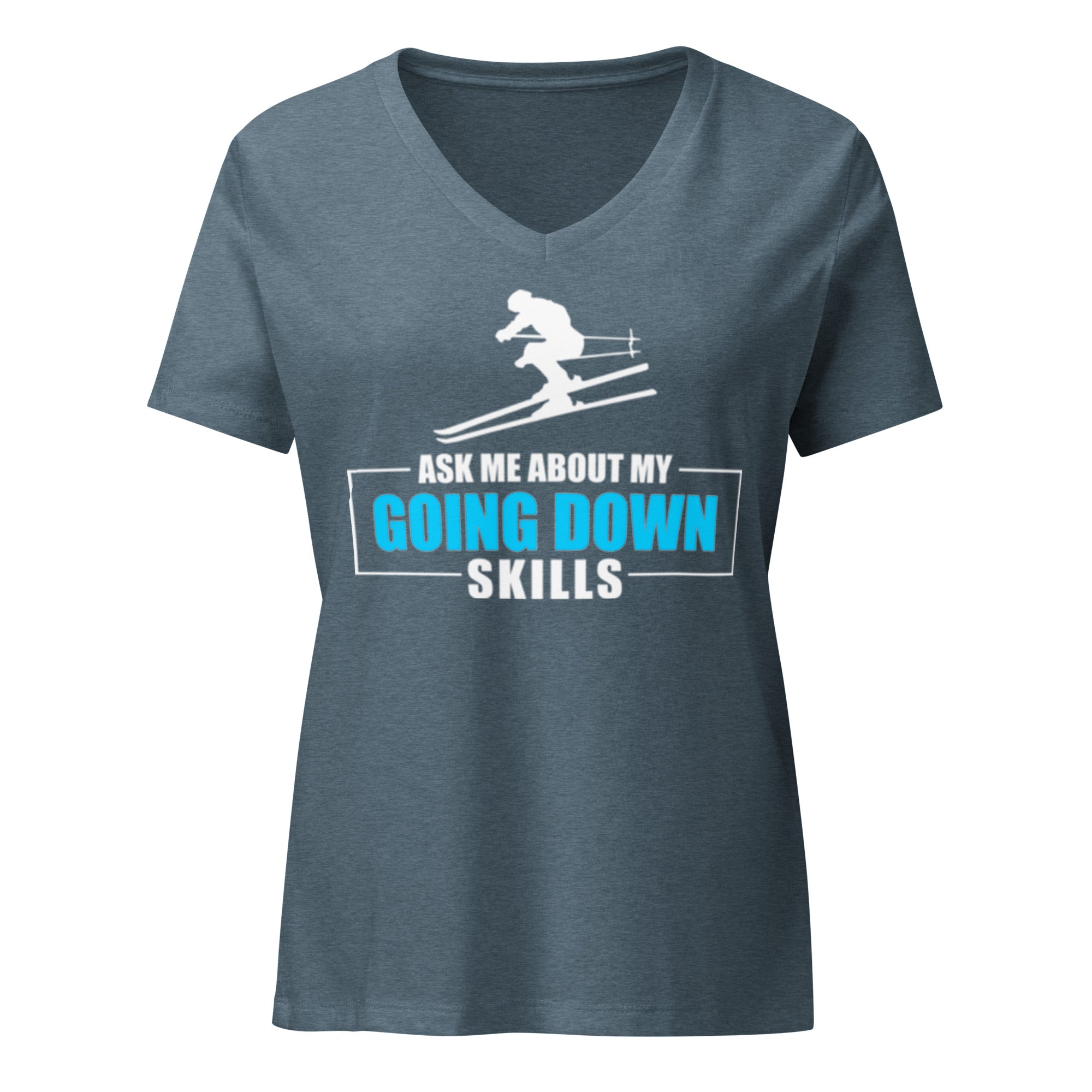 • Ask Me About My Going Down Skills - Ski Women’s relaxed v-neck t-shirt
