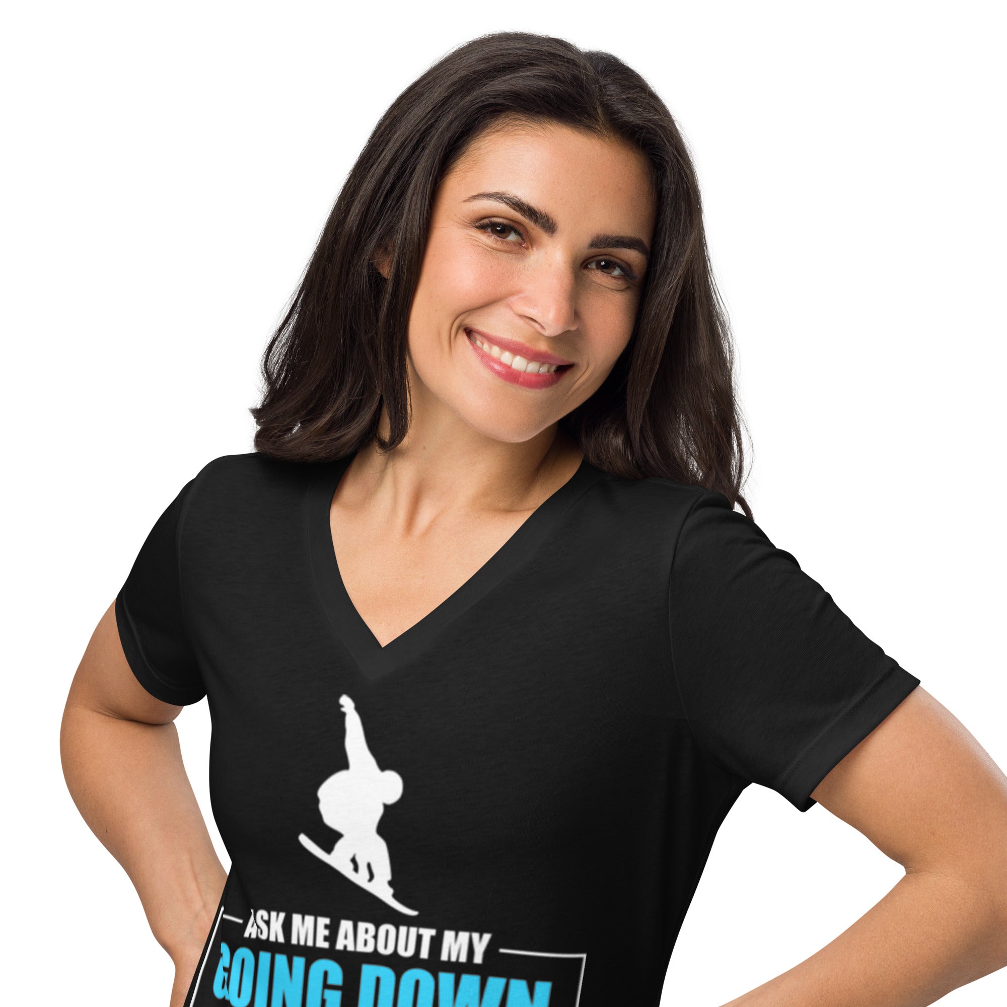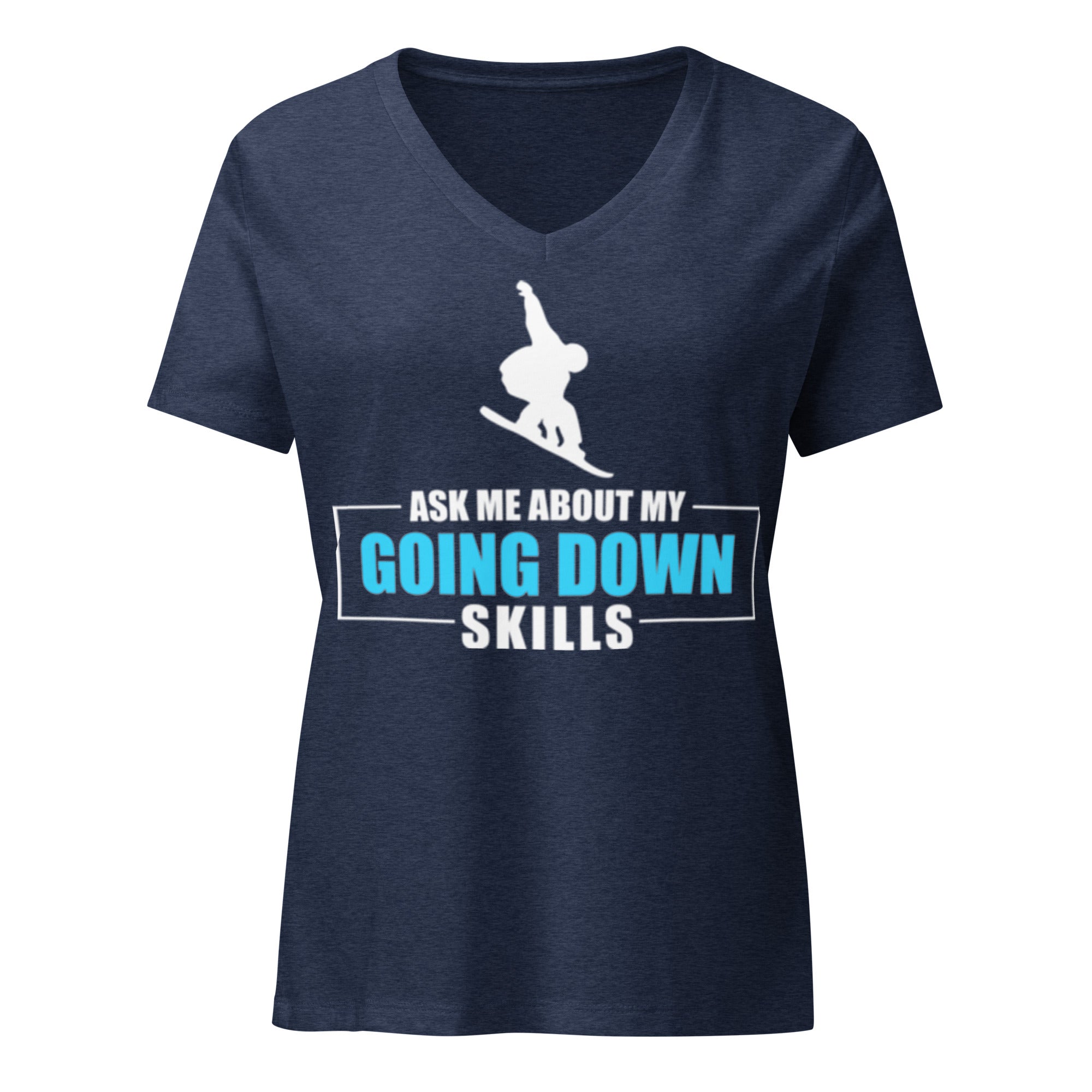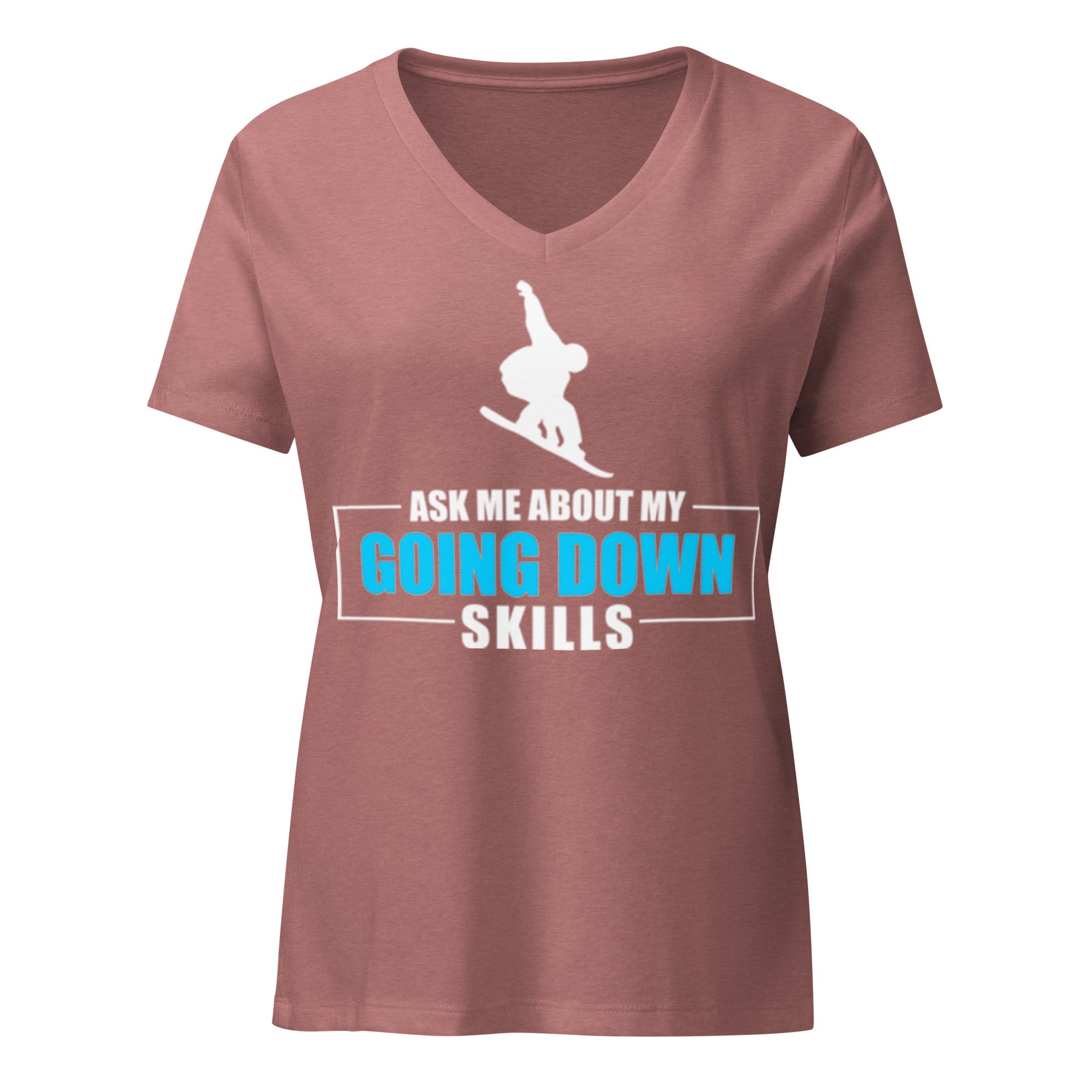 • Ask Me About My Going Down Skills - Snowboard Women’s relaxed v-neck t-shirt