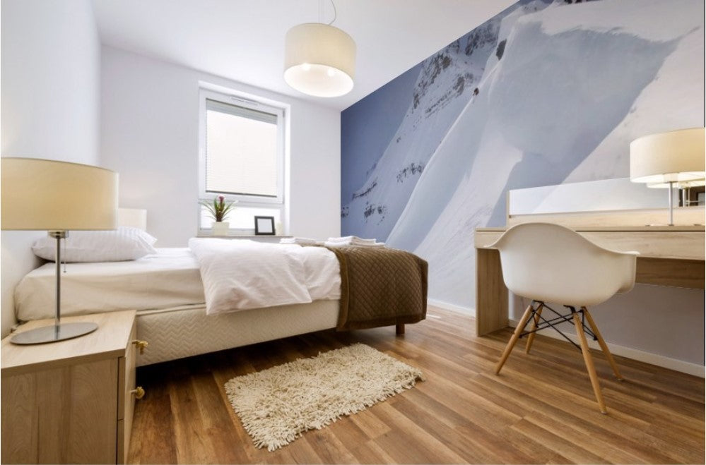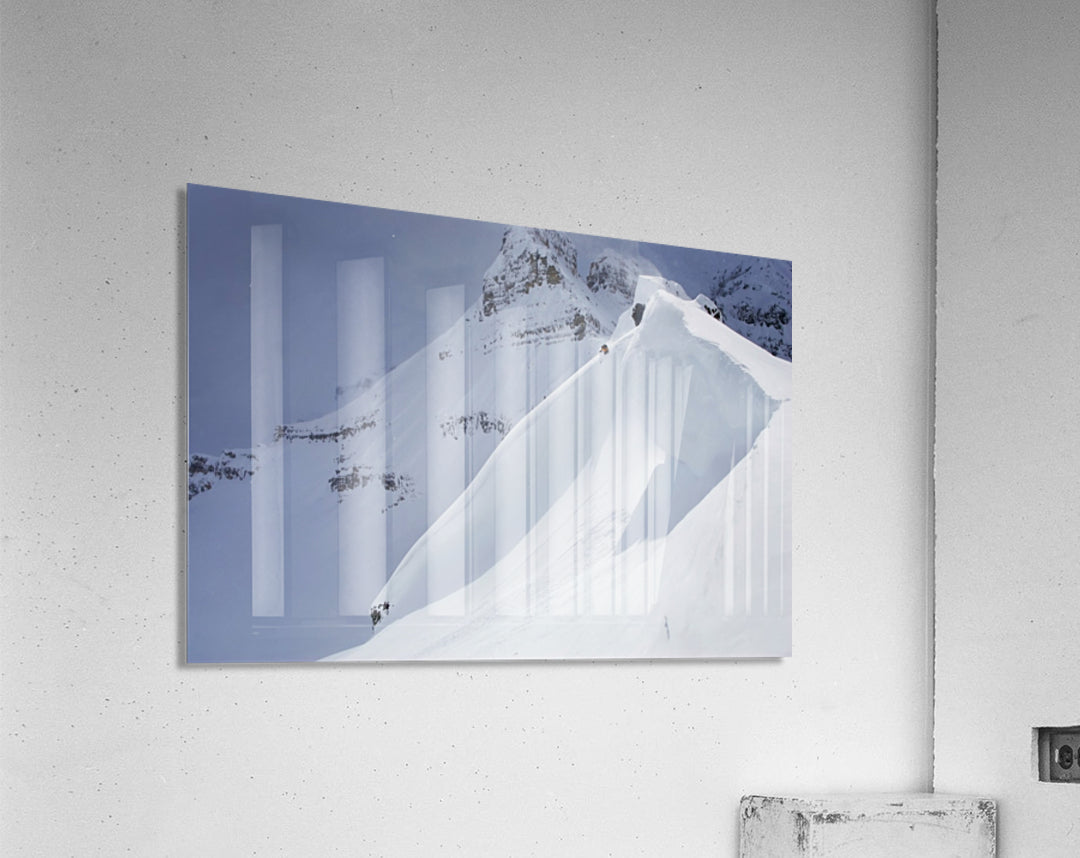 • Skier On Crest Of Big Drop, Dwarfed By Mountain; Canada, British Columbia, Icefall Lodge