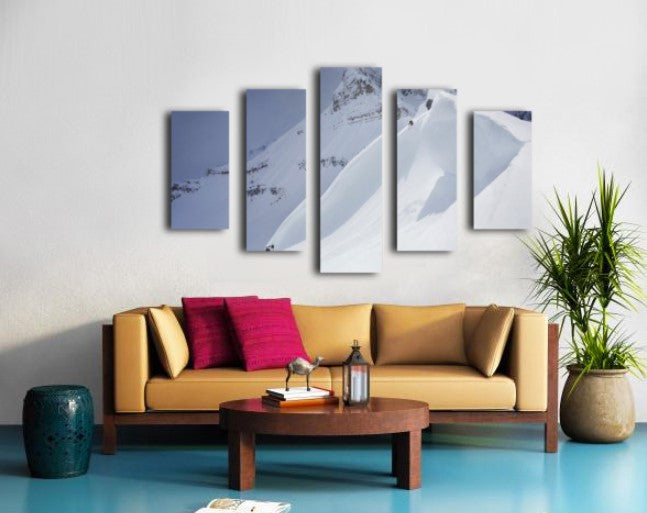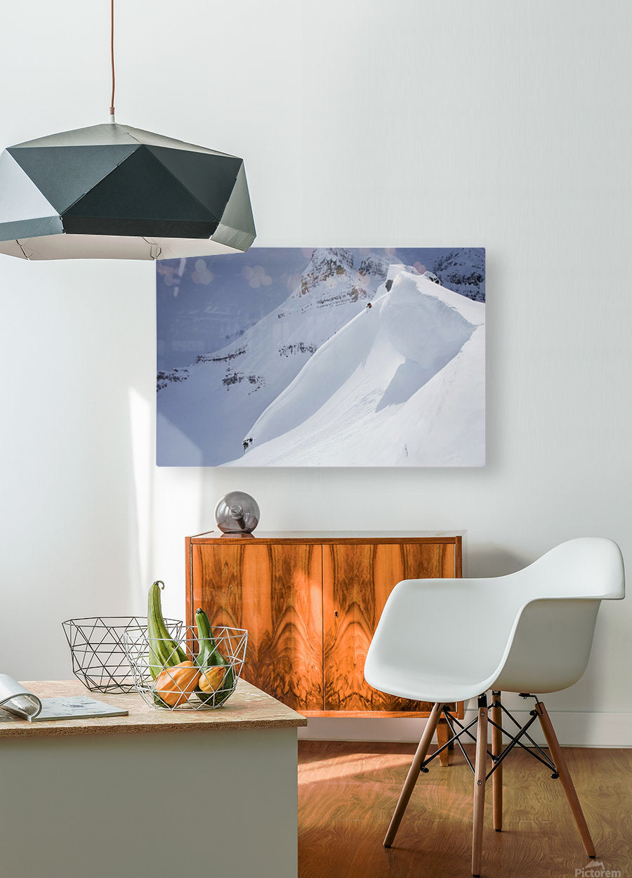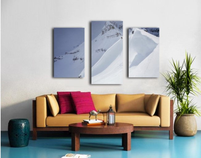 Skier On Crest Of Big Drop, Dwarfed By Mountain; Canada, British Columbia, Icefall Lodge - Powderaddicts