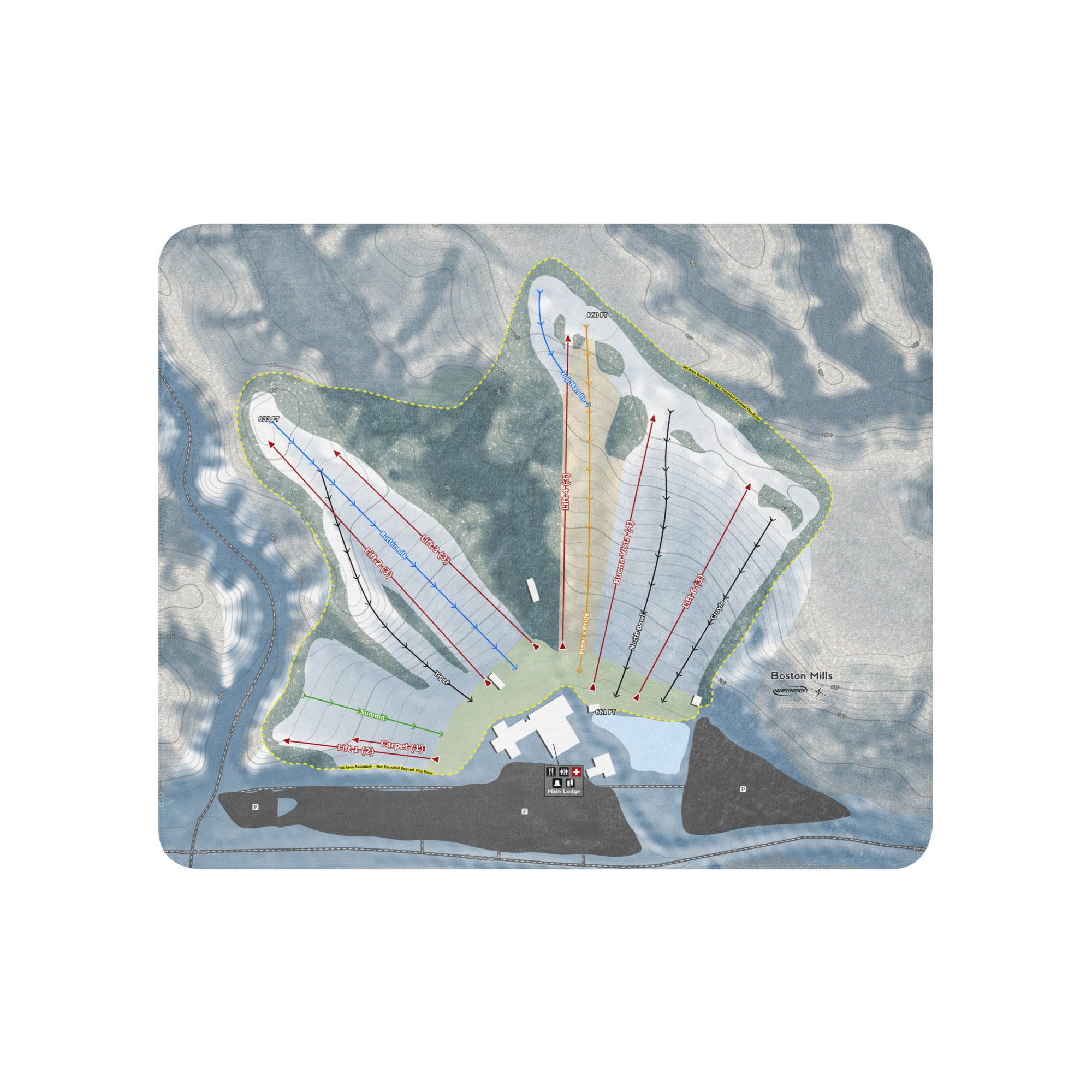 Ready to bring your home mountain to your couch? The Boston Mills, Ohio Ski Trail Blanket features vivid trail maps of every run, lift, and landmark. It’s more than a blanket—it’s a connection to your favorite days on the slopes.