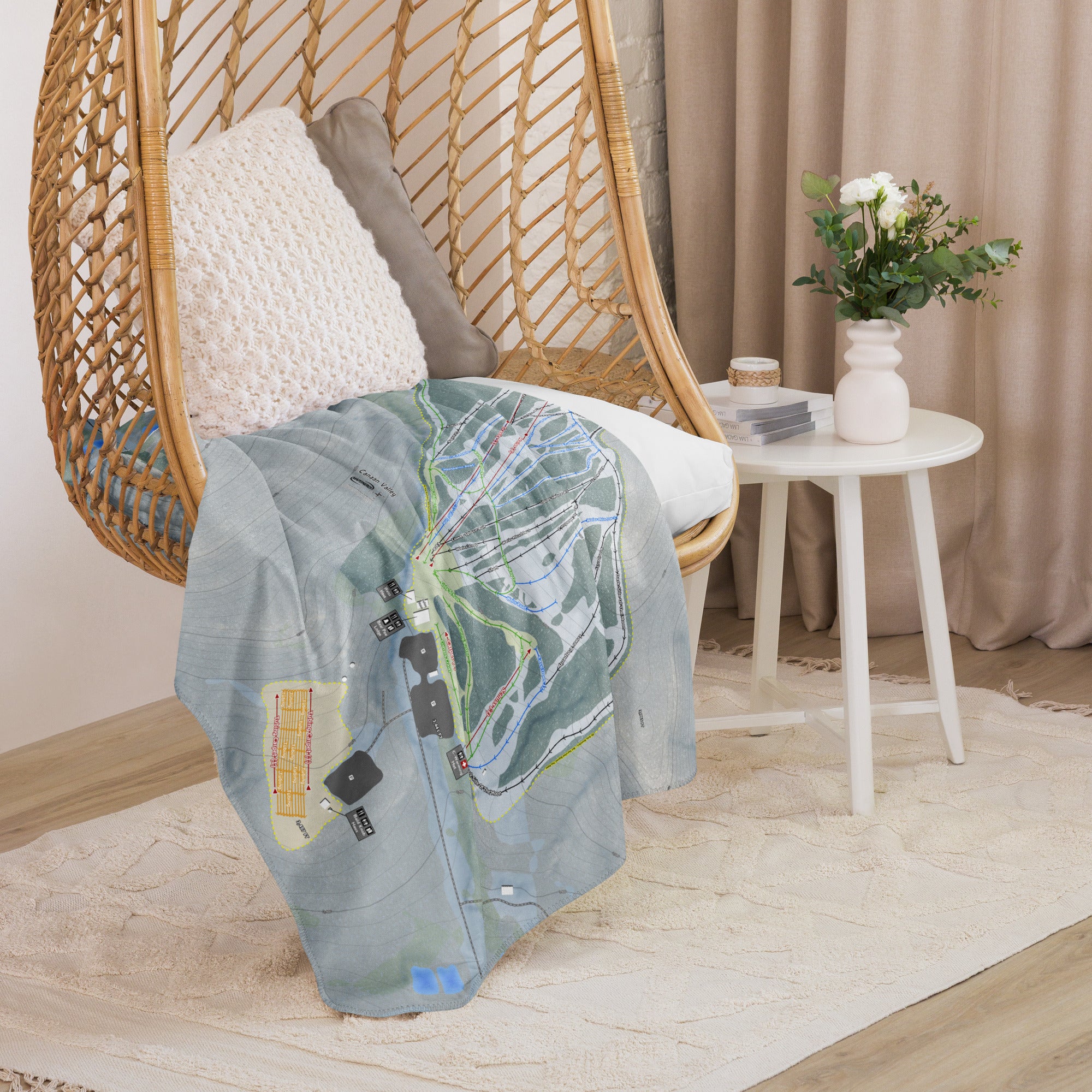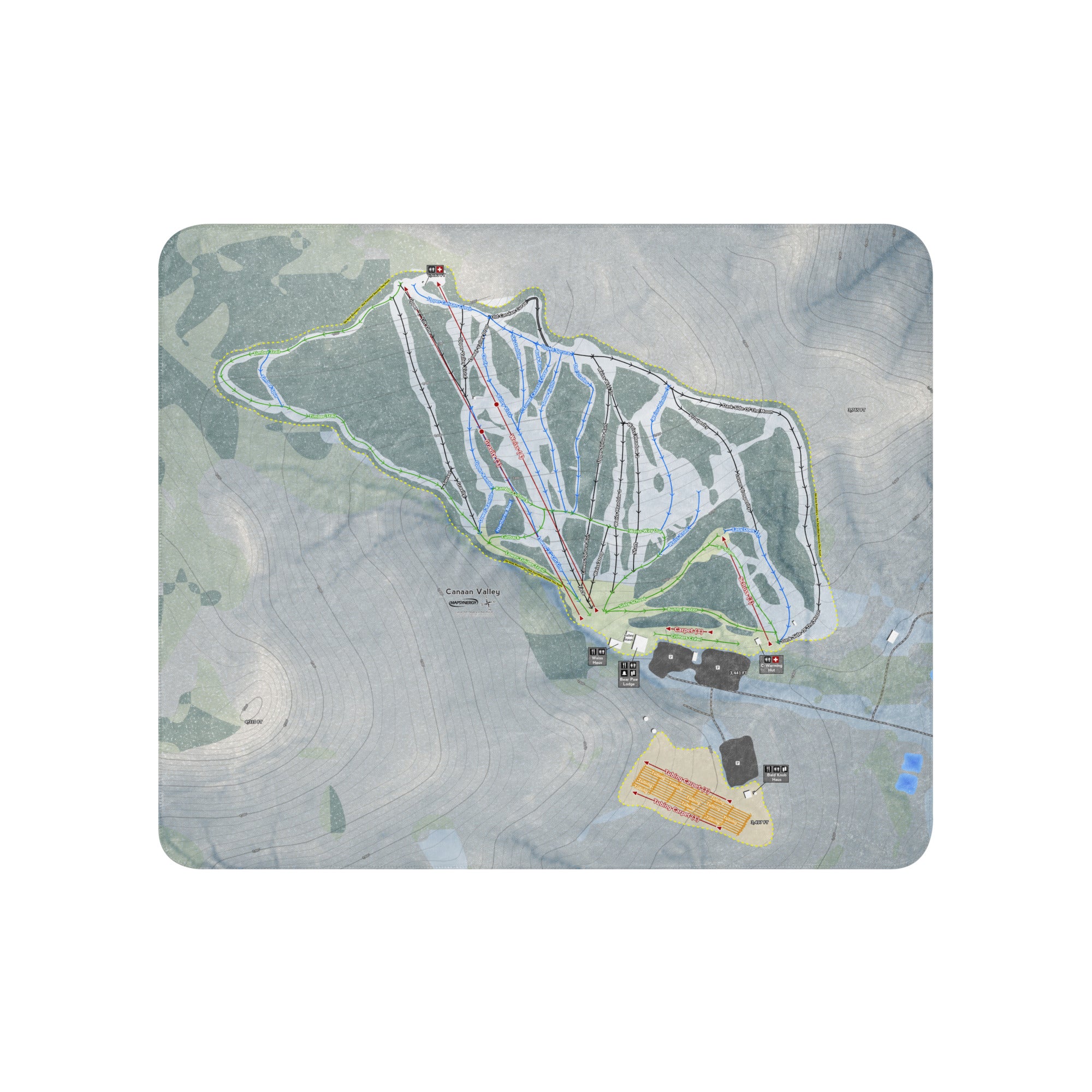 Ready to bring your home mountain to your couch? The Canaan Valley, West Virginia Ski Trail Blanket features vivid trail maps of every run, lift, and landmark. It’s more than a blanket—it’s a connection to your favorite days on the slopes.