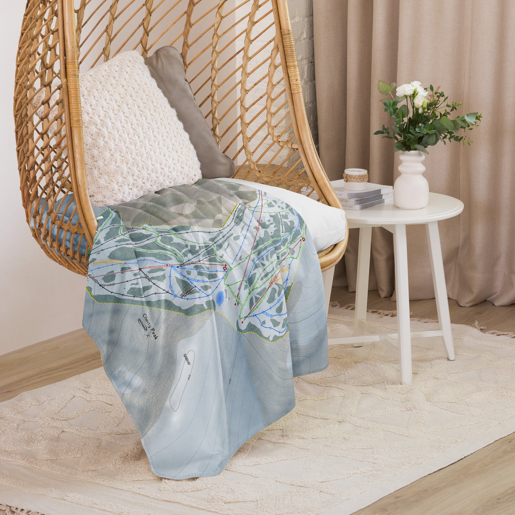 Ready to bring your home mountain to your couch? The Cherry Peak, Utah Ski Trail Blanket features vivid trail maps of every run, lift, and landmark. It’s more than a blanket—it’s a connection to your favorite days on the slopes.