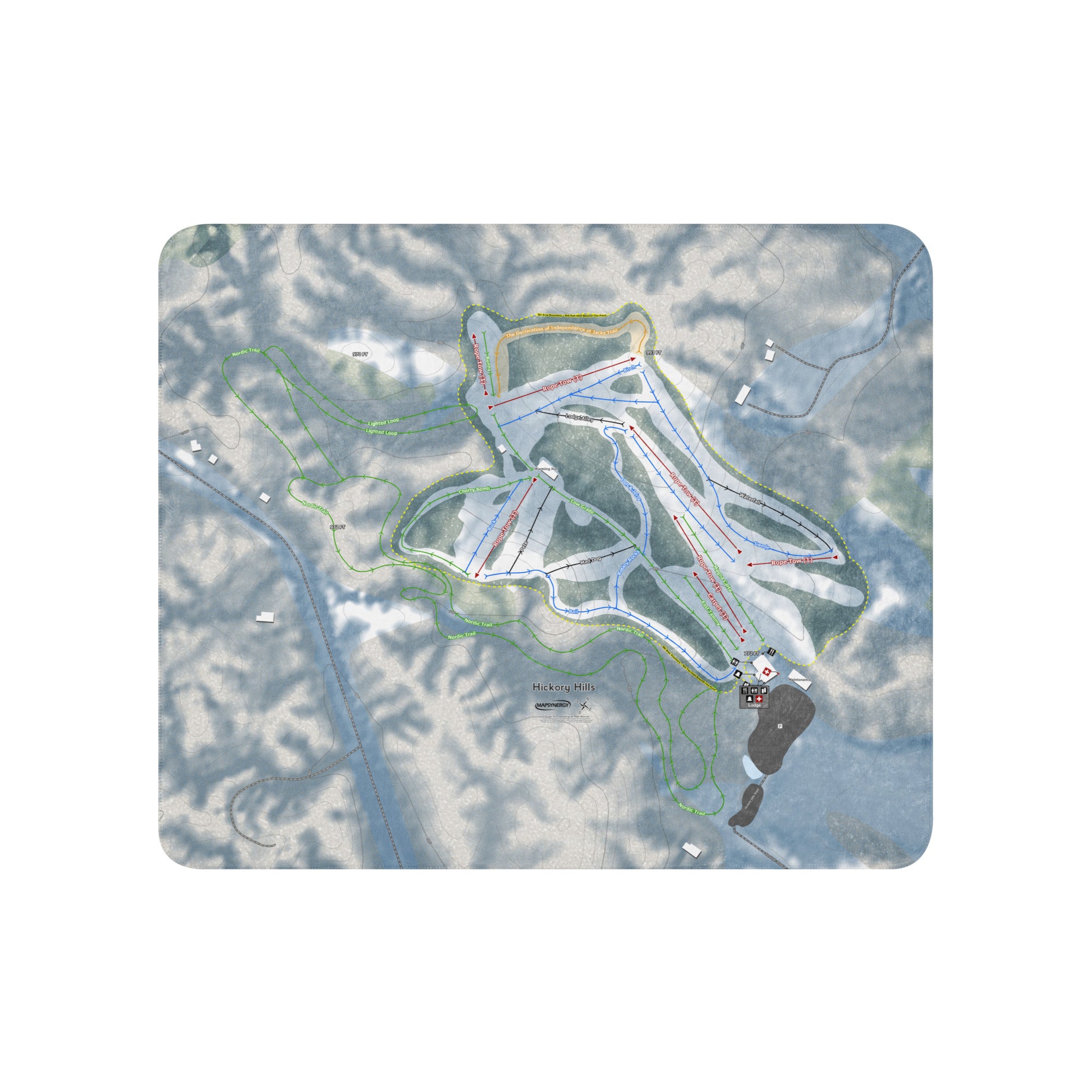 Ready to bring your home mountain to your couch? The Hickory Hills, Michigan Ski Trail Blanket features vivid trail maps of every run, lift, and landmark. It’s more than a blanket—it’s a connection to your favorite days on the slopes.