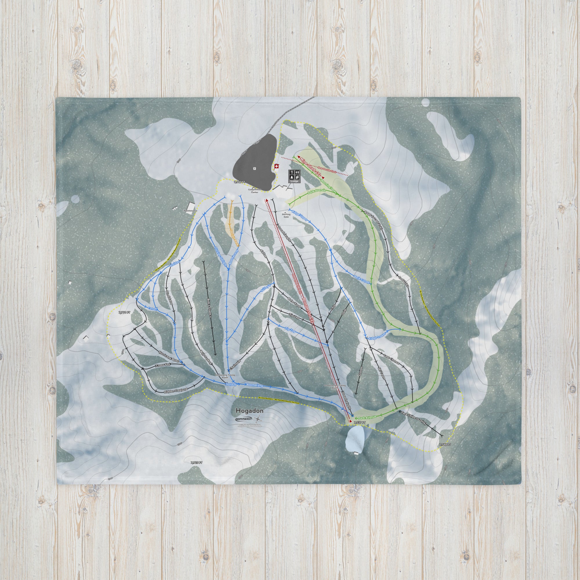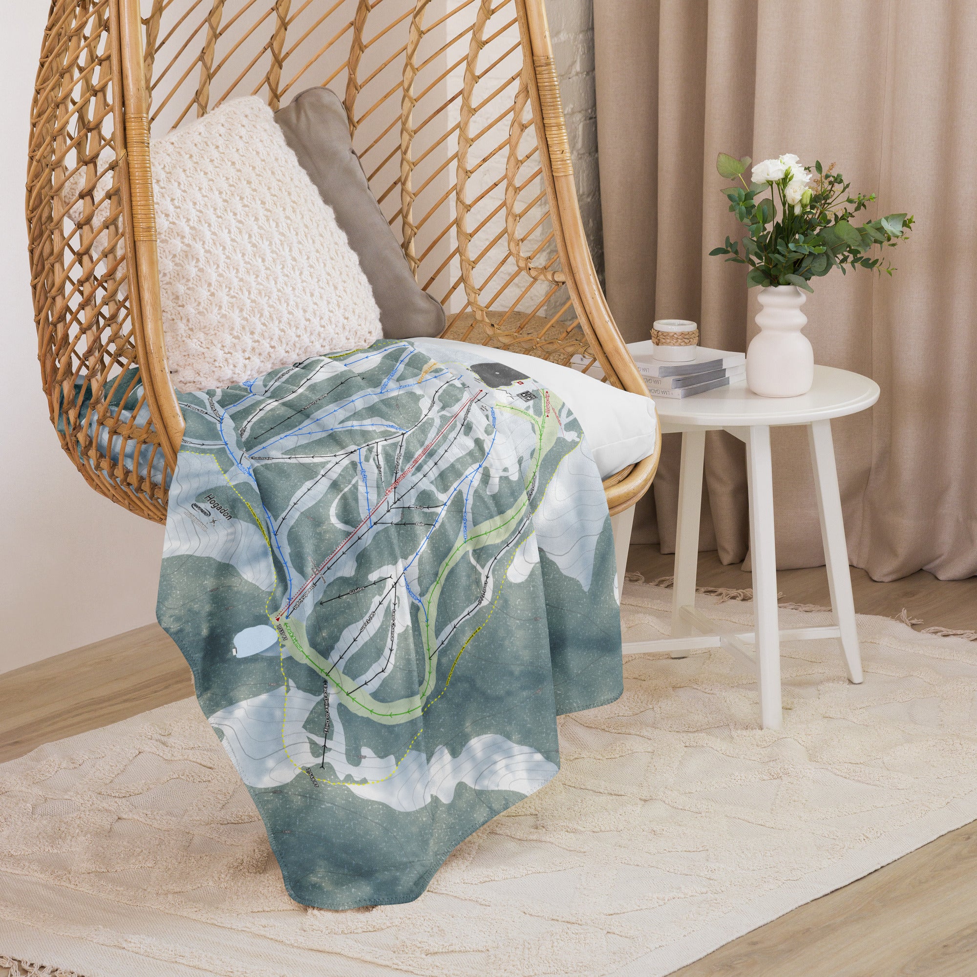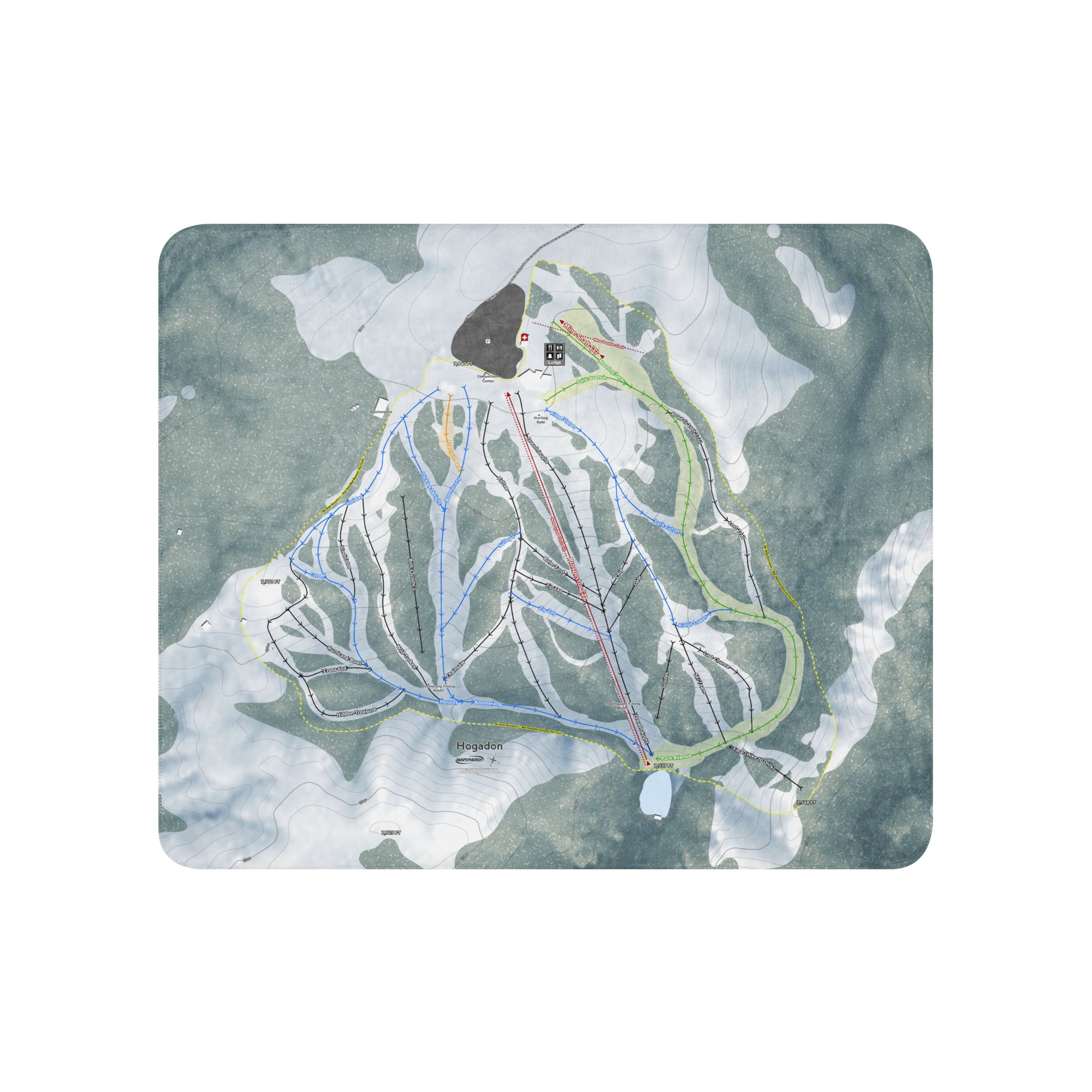 Ready to bring your home mountain to your couch? The Hogadon, Wyoming Ski Trail Blanket features vivid trail maps of every run, lift, and landmark. It’s more than a blanket—it’s a connection to your favorite days on the slopes.