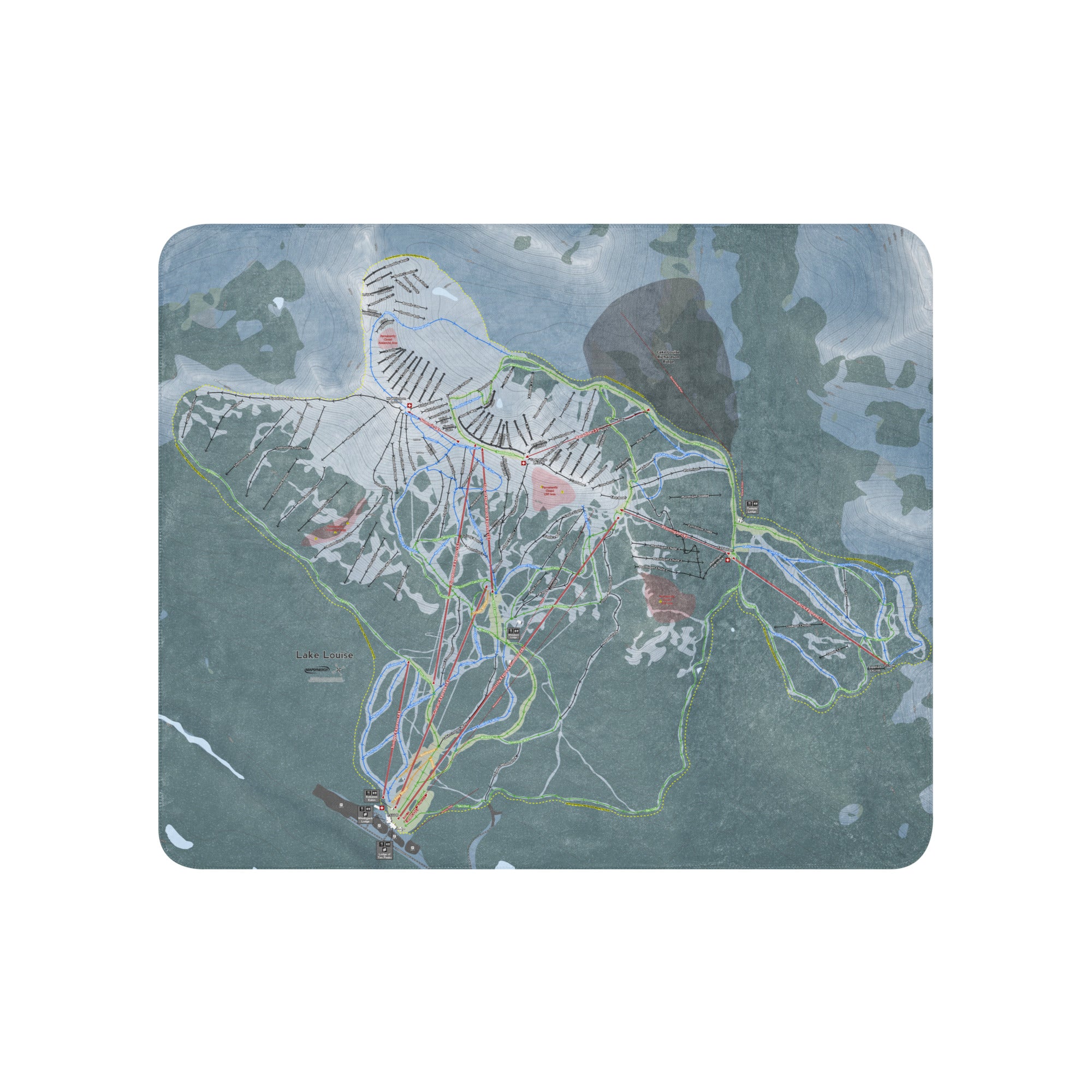 Ready to bring your home mountain to your couch? The Lake Louise, Alberta Ski Trail Blanket features vivid trail maps of every run, lift, and landmark. It’s more than a blanket—it’s a connection to your favorite days on the slopes.