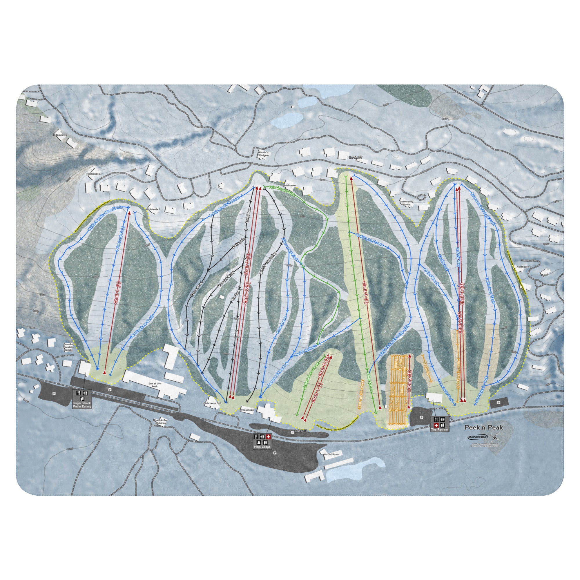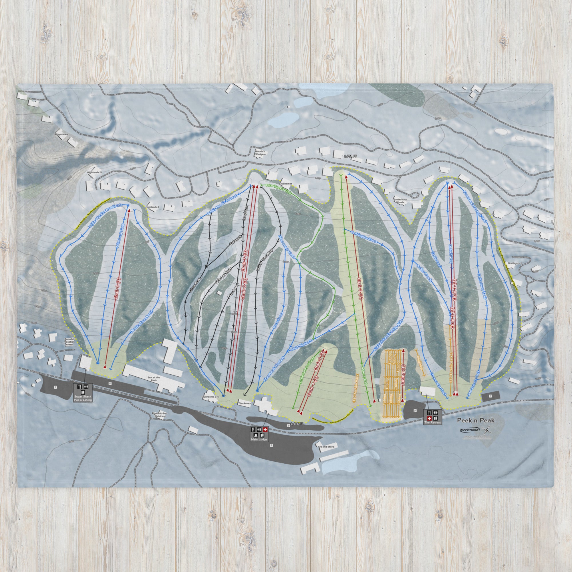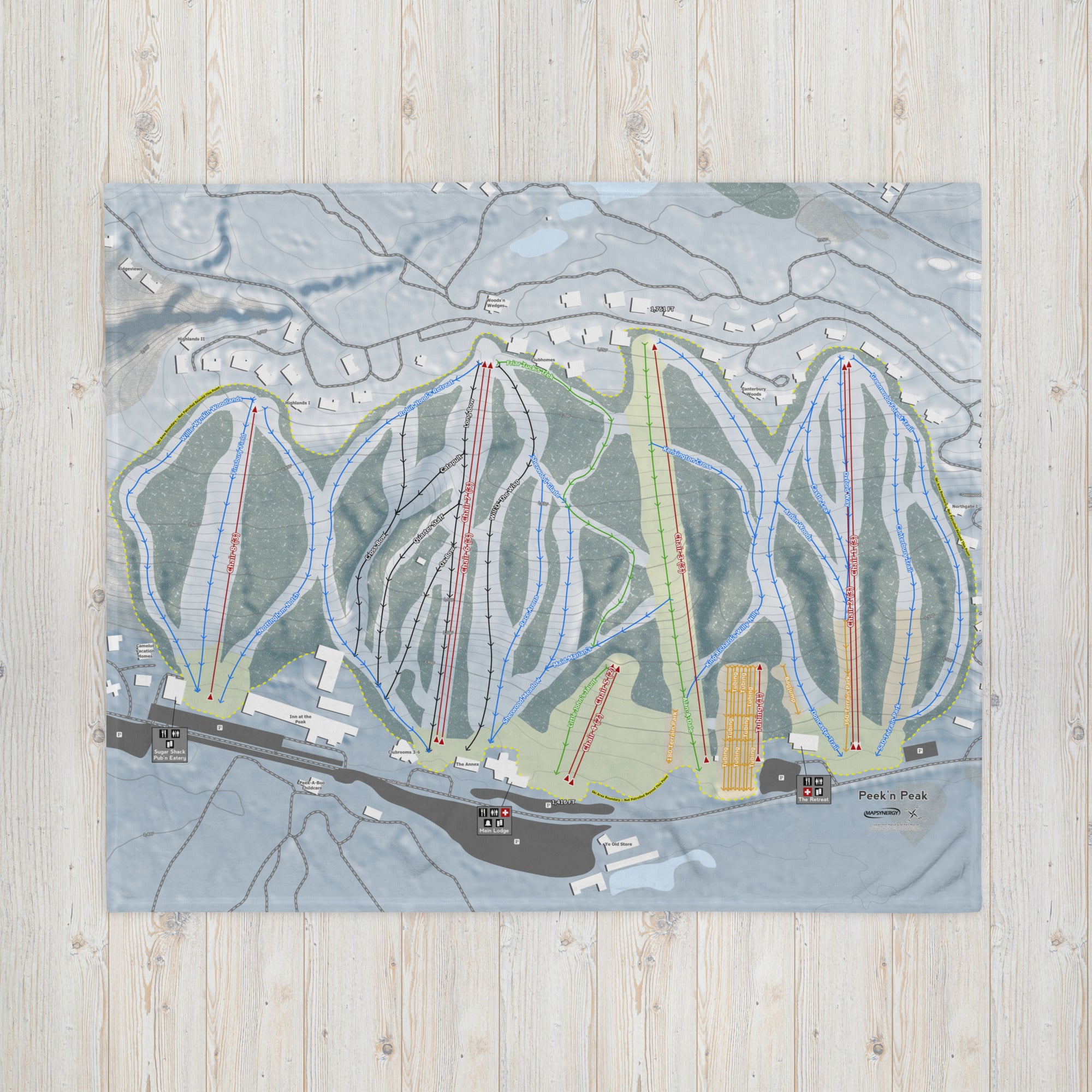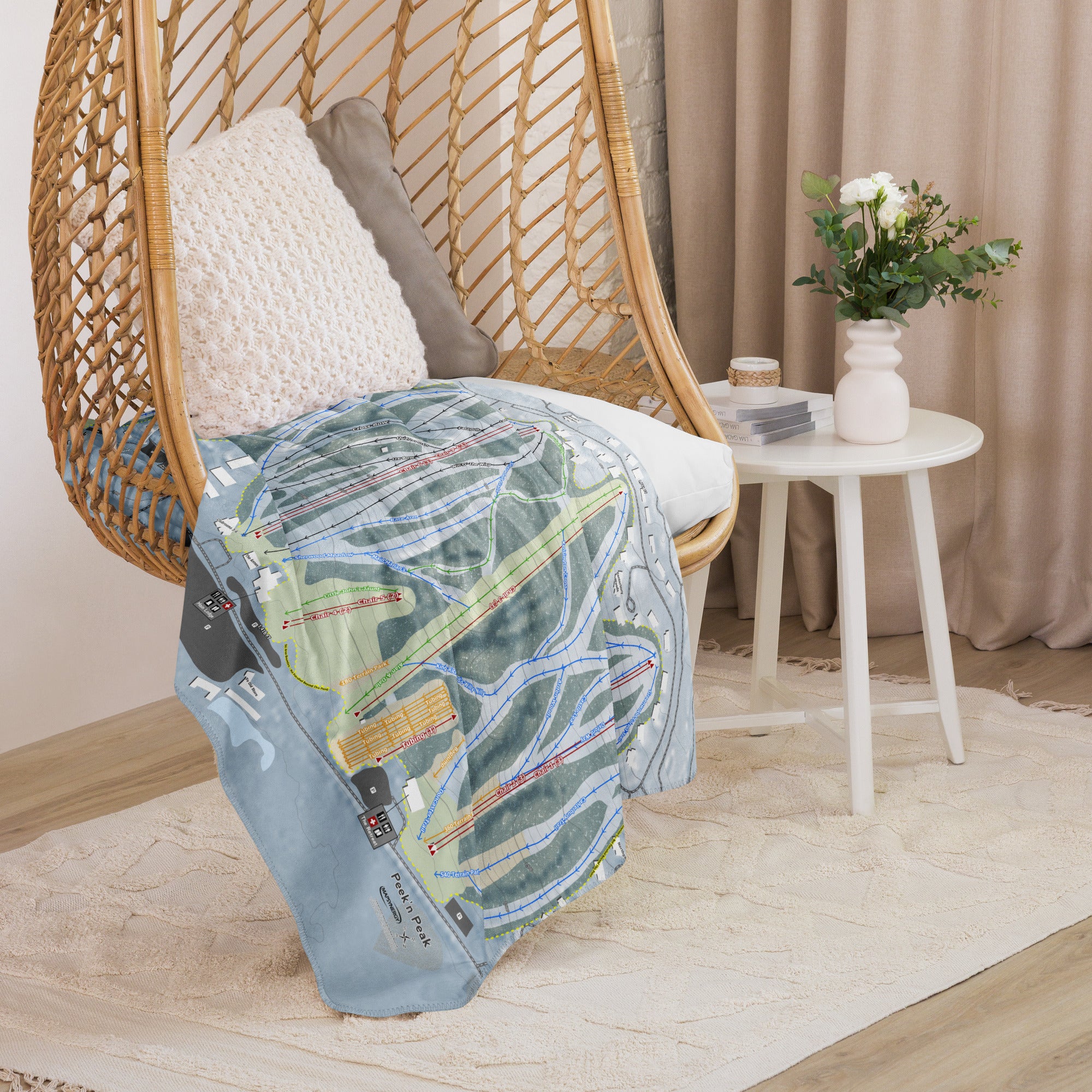 Ready to bring your home mountain to your couch? The Peek'n Peak, New York Ski Trail Blanket features vivid trail maps of every run, lift, and landmark. It’s more than a blanket—it’s a connection to your favorite days on the slopes.