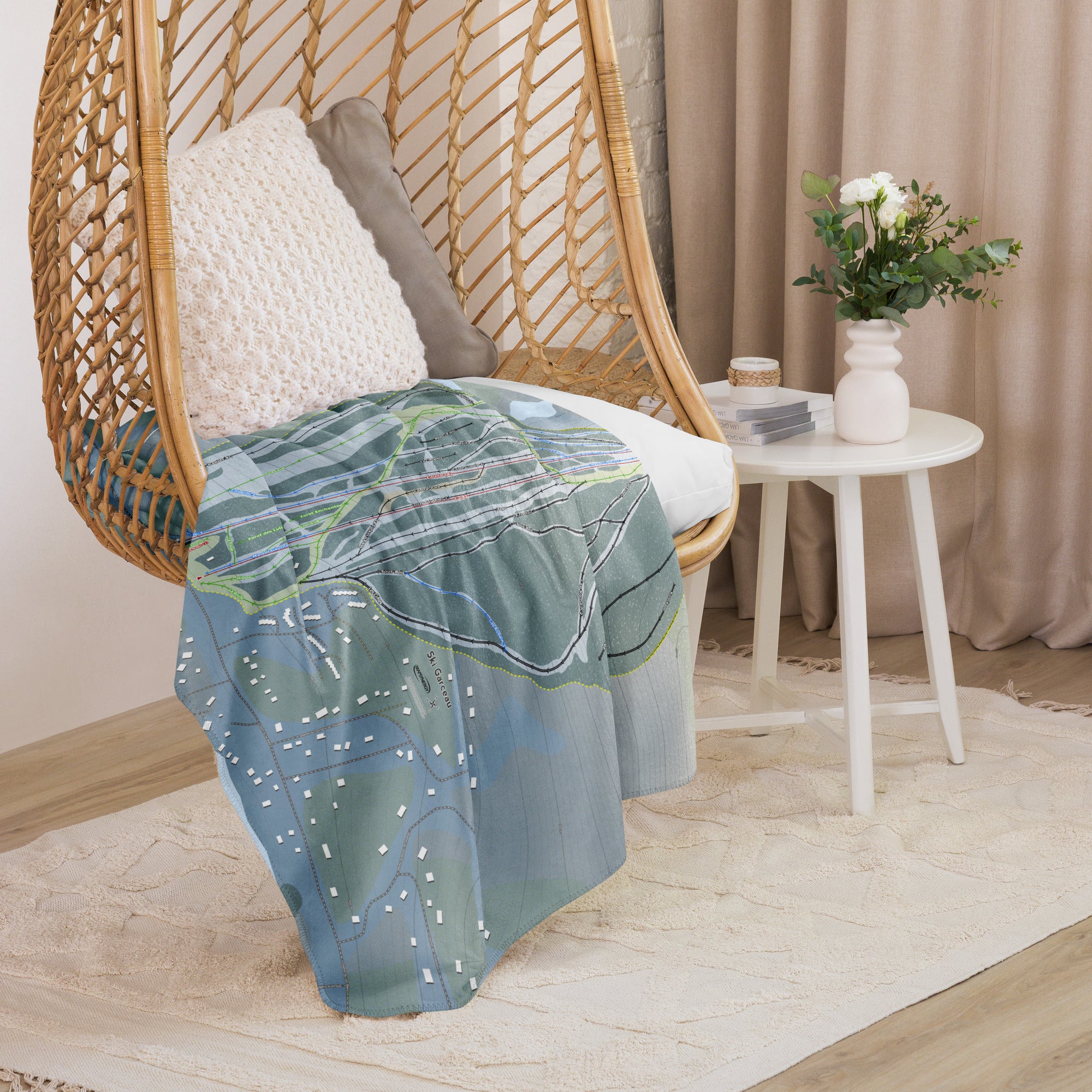 Ready to bring your home mountain to your couch? The Ski Garceau, Quebec Ski Trail Blanket features vivid trail maps of every run, lift, and landmark. It’s more than a blanket—it’s a connection to your favorite days on the slopes.