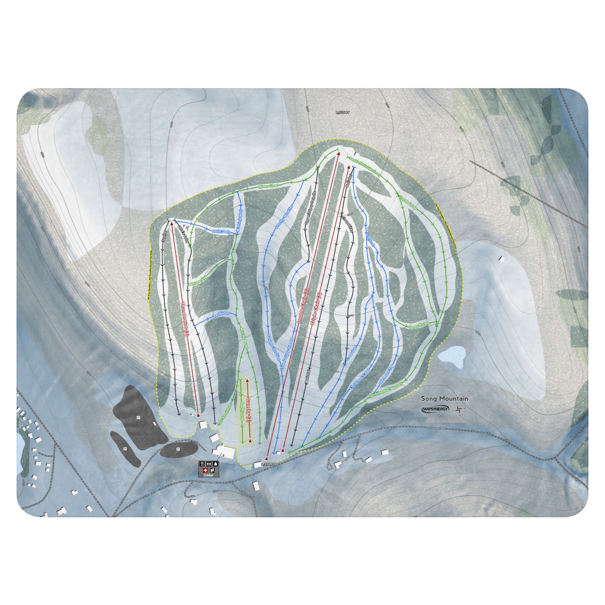 Ready to bring your home mountain to your couch? The Song Mountain, New York Ski Trail Blanket features vivid trail maps of every run, lift, and landmark. It’s more than a blanket—it’s a connection to your favorite days on the slopes.