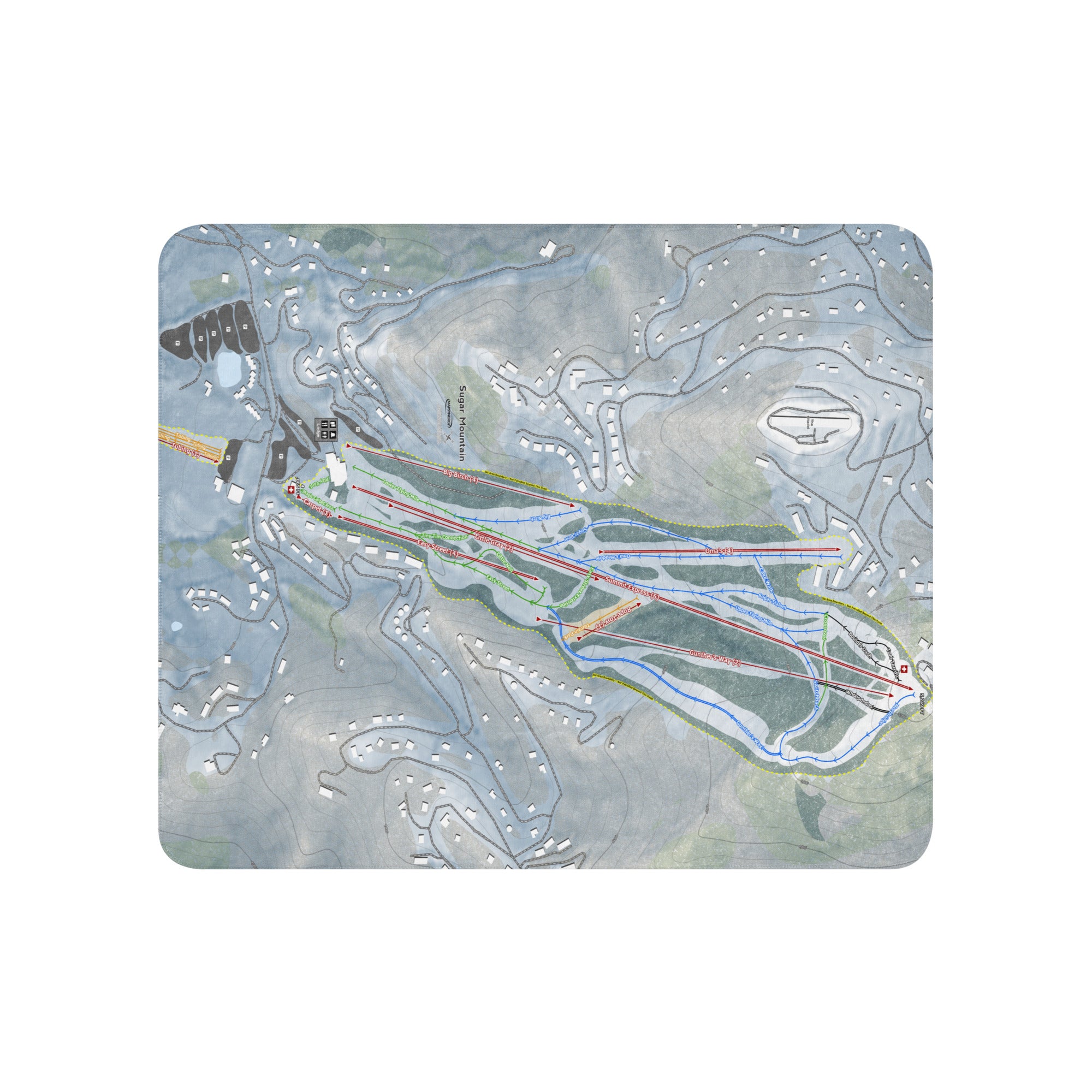 Ready to bring your home mountain to your couch? The Sugar Mountain, North Carolina Ski Trail Blanket features vivid trail maps of every run, lift, and landmark. It’s more than a blanket—it’s a connection to your favorite days on the slopes.