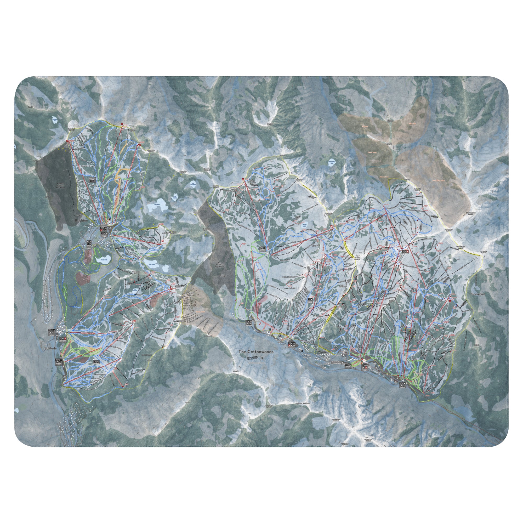 Ready to bring your home mountain to your couch? The The Cottonwoods, Utah Ski Trail Blanket features vivid trail maps of every run, lift, and landmark. It’s more than a blanket—it’s a connection to your favorite days on the slopes.