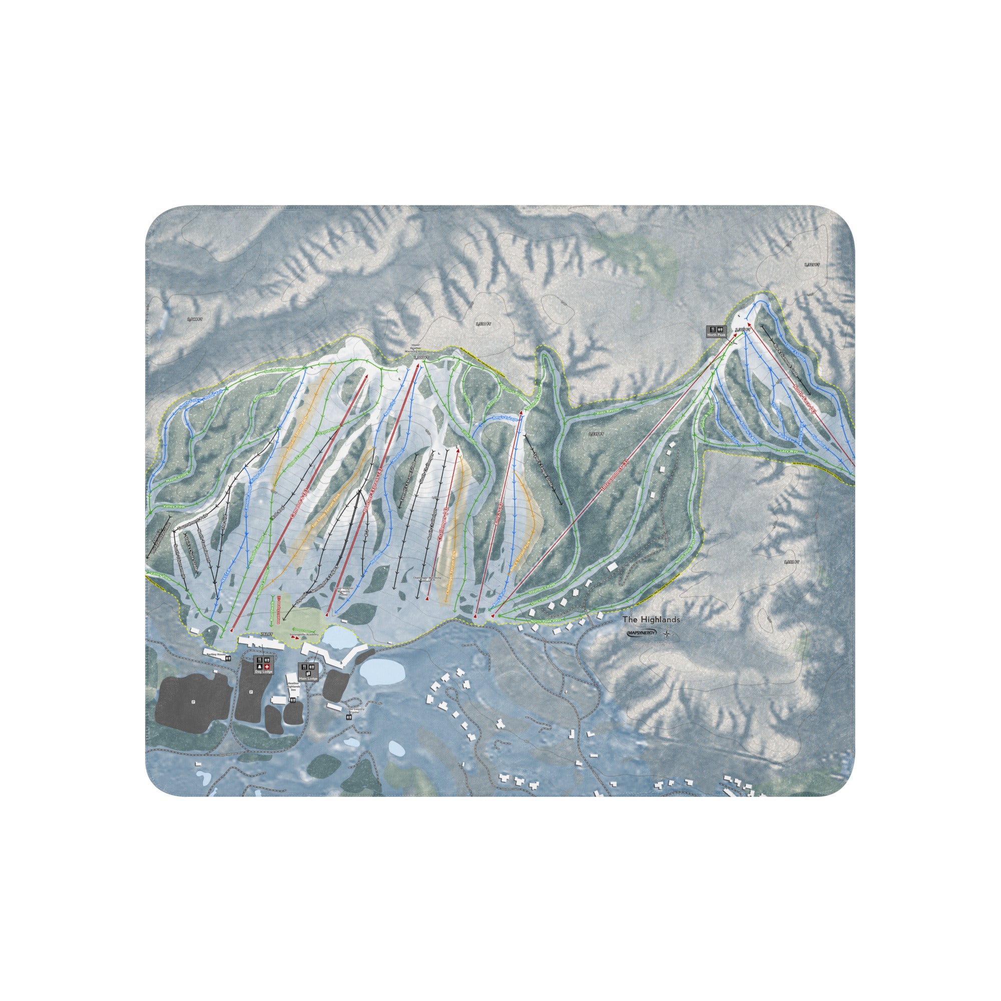 Ready to bring your home mountain to your couch? The THE HIGHLANDS, MICHIGAN Ski Trail Blanket features vivid trail maps of every run, lift, and landmark. It’s more than a blanket—it’s a connection to your favorite days on the slopes.