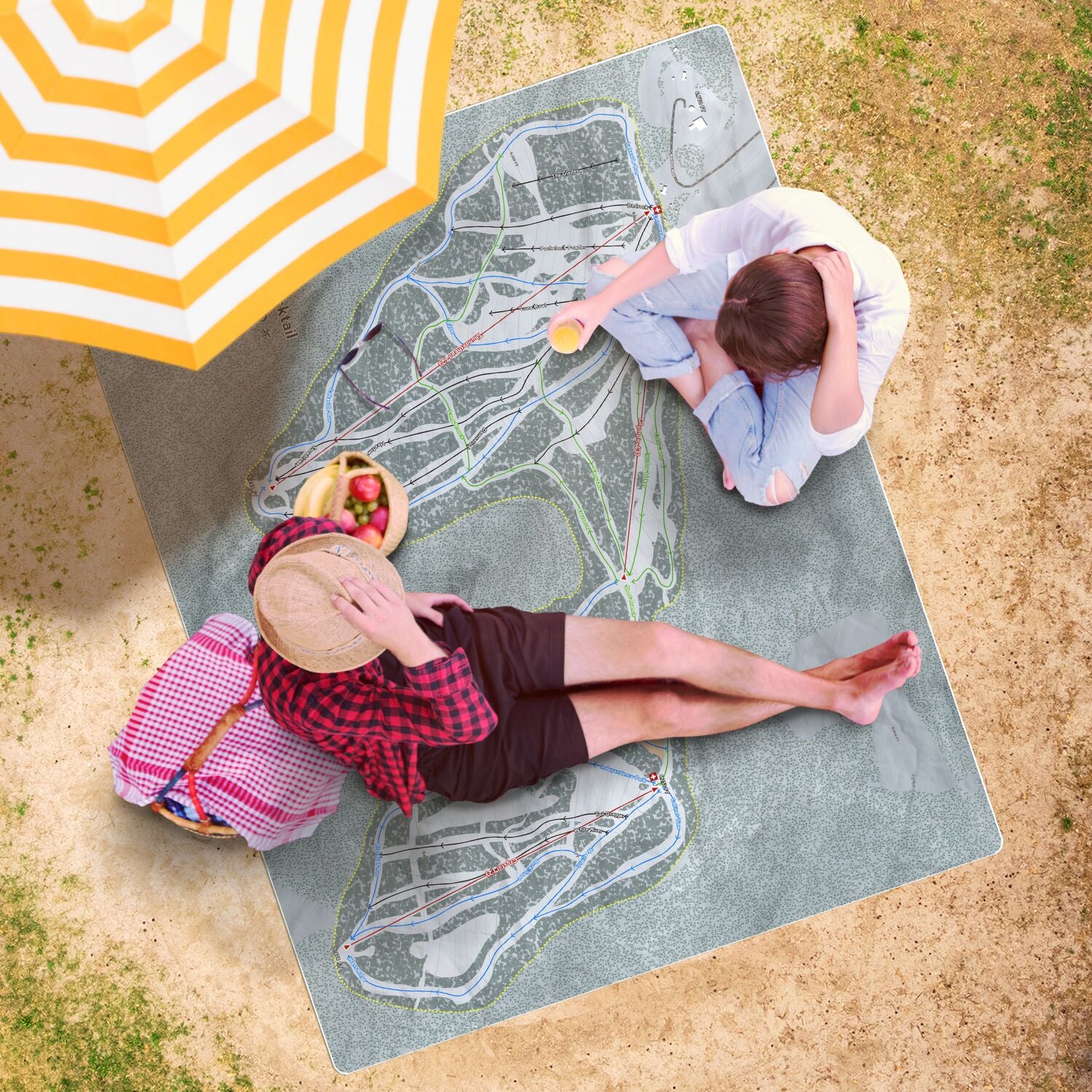 • Blacktail, Montana Ski Resort Map Printed Beach Towel