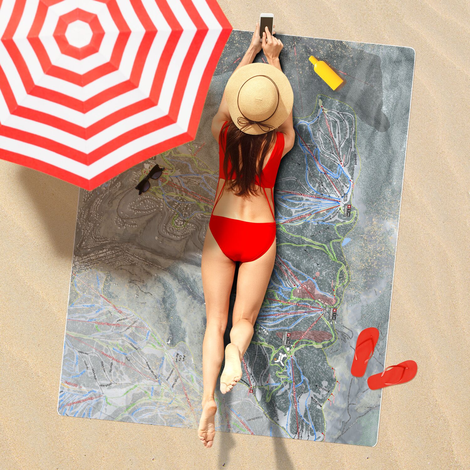 • Deer Valley, Utah Ski Resort Map Printed Beach Towel