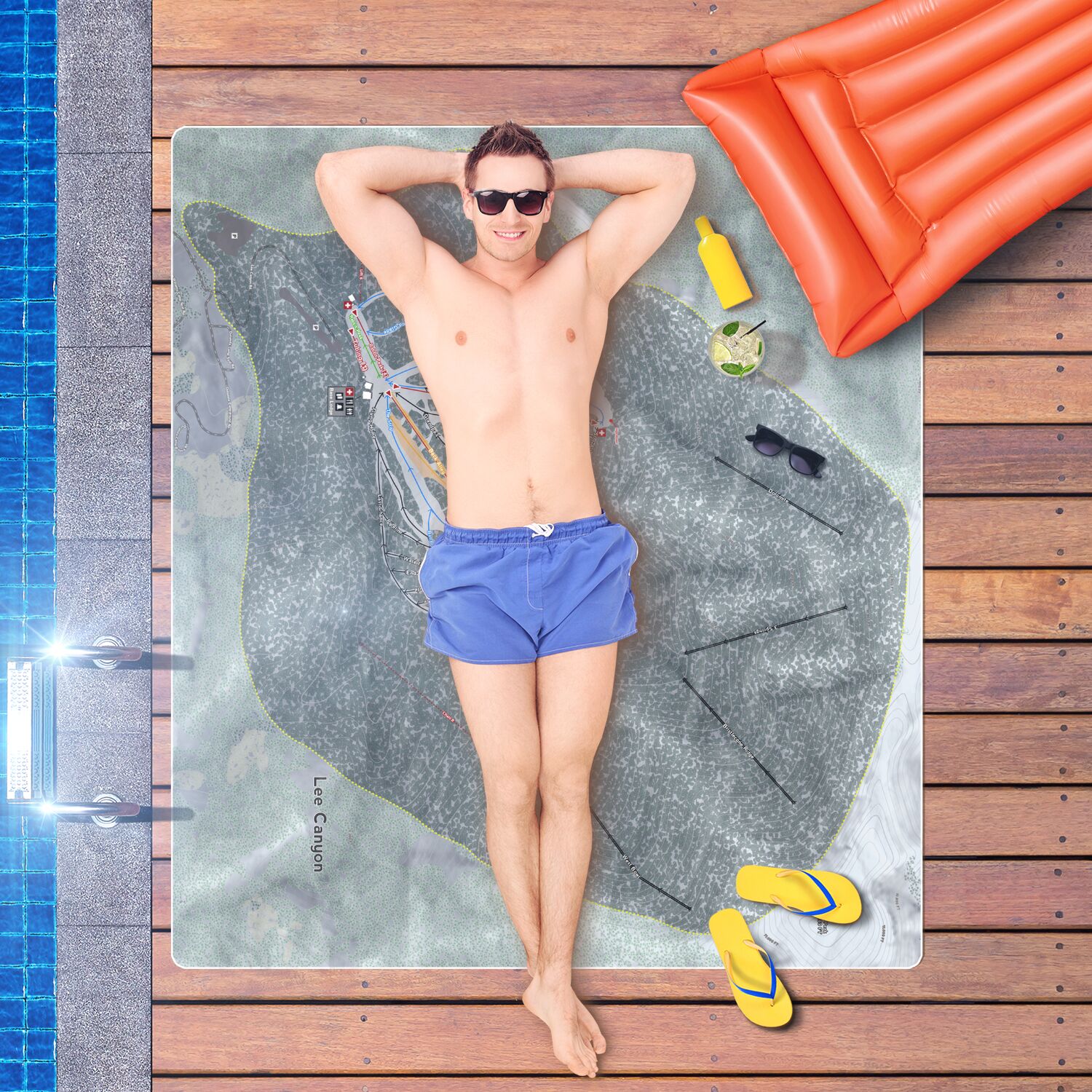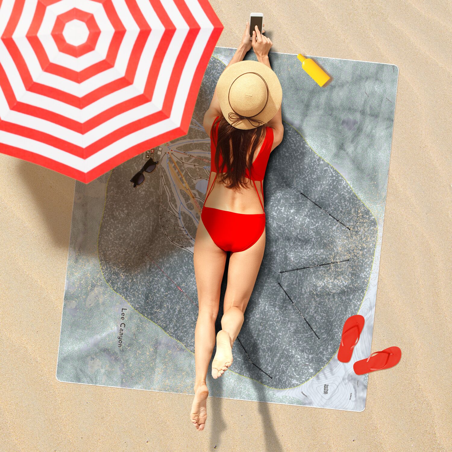 • Lee Canyon, Nevada Ski Resort Map Printed Beach Towel