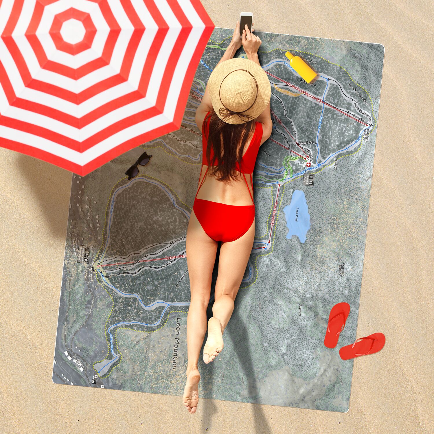 • Loon Mountain, New Hampshire Ski Resort Map Printed Beach Towel