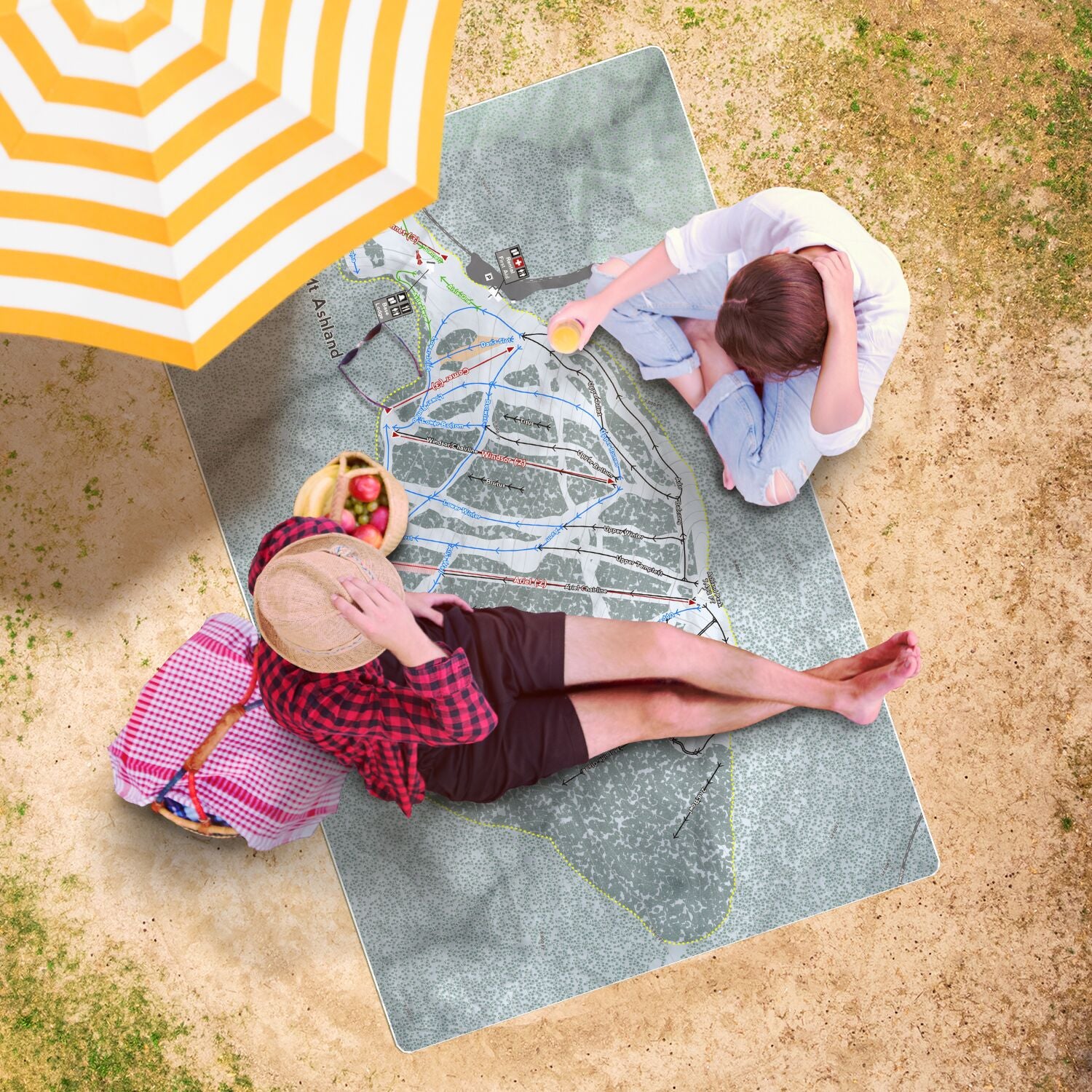 • Mt Ashland, Oregon Ski Resort Map Printed Beach Towel