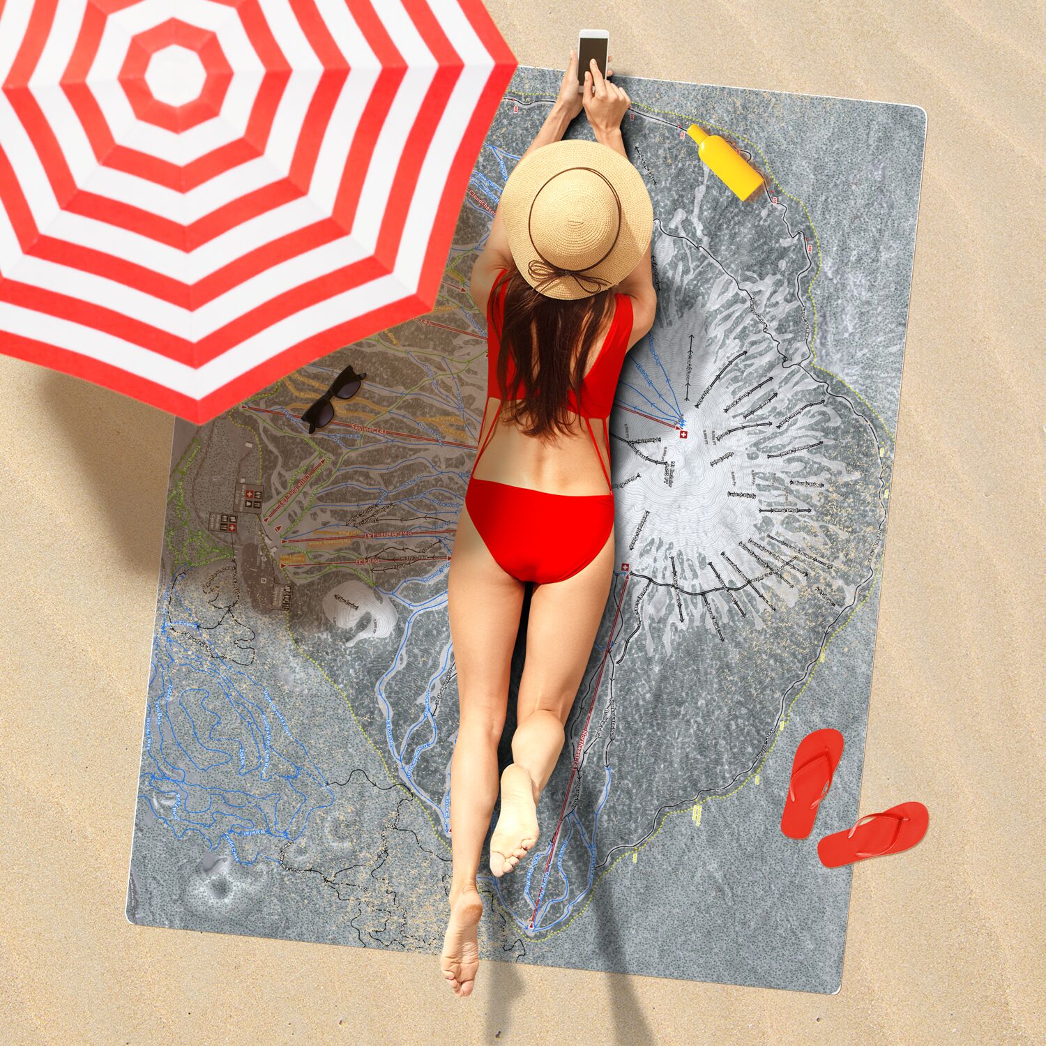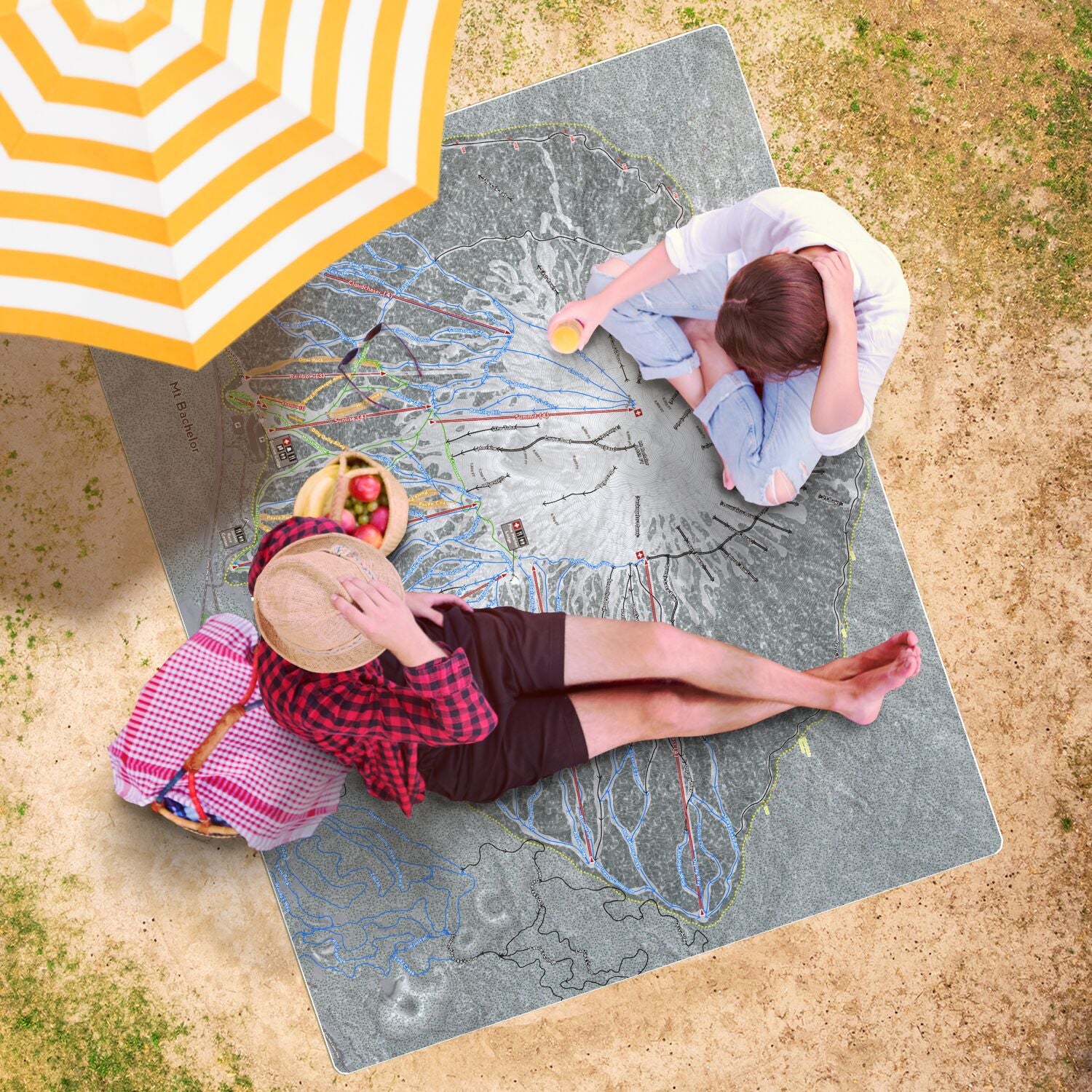 • Mt Bachelor, Oregon Ski Resort Map Printed Beach Towel