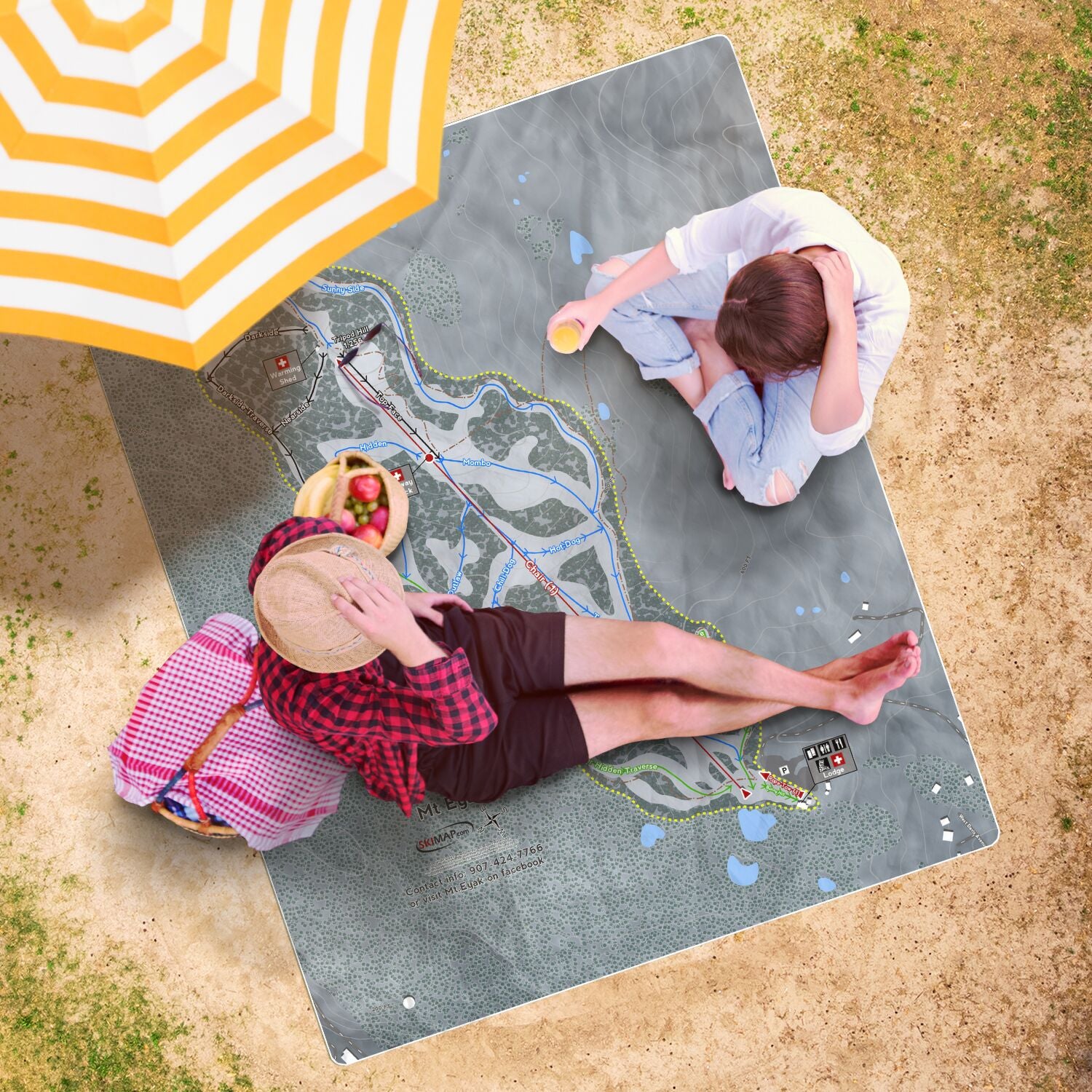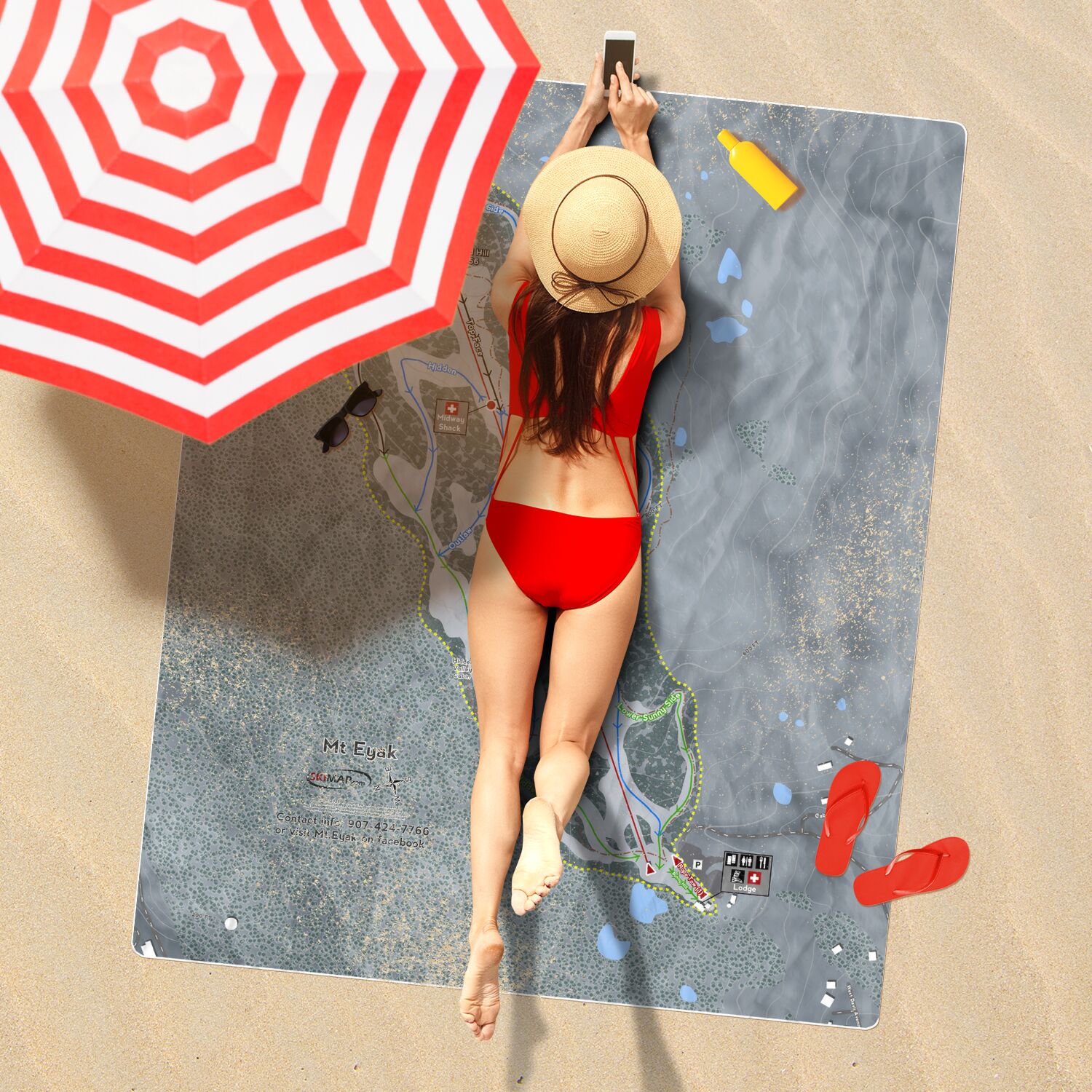 • Mt Eyak, Alaska Ski Resort Map Printed Beach Towel
