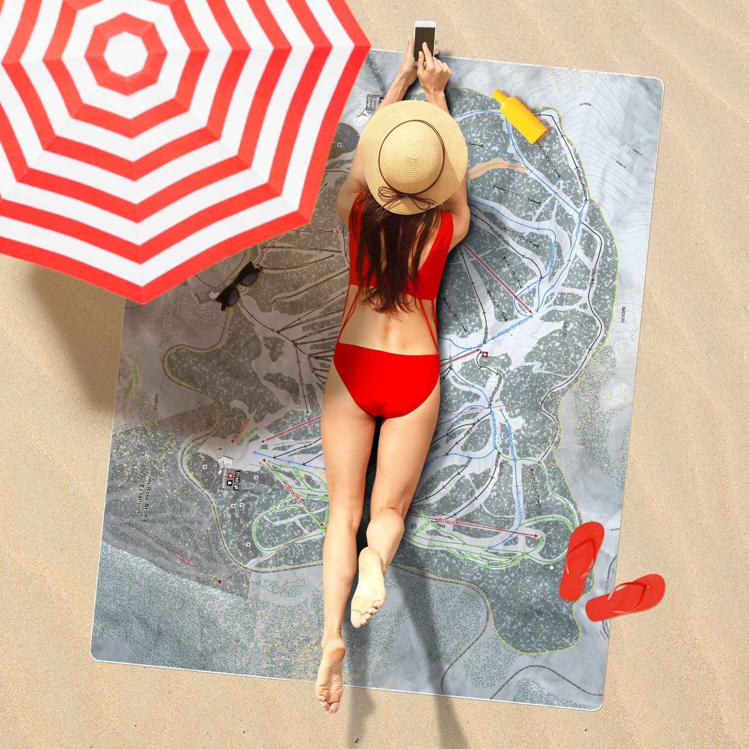 • Mt Rose, Nevada Ski Resort Map Printed Beach Towel