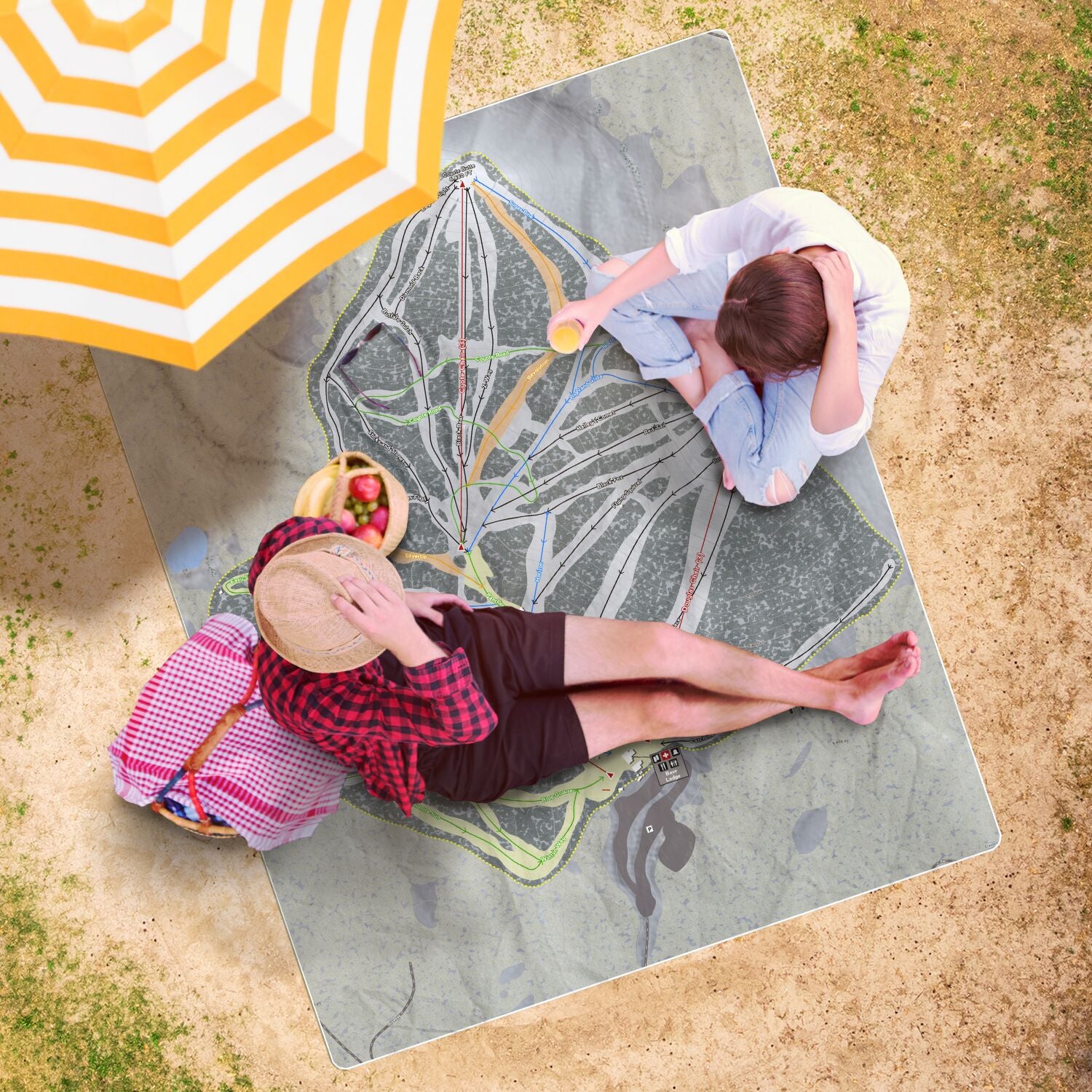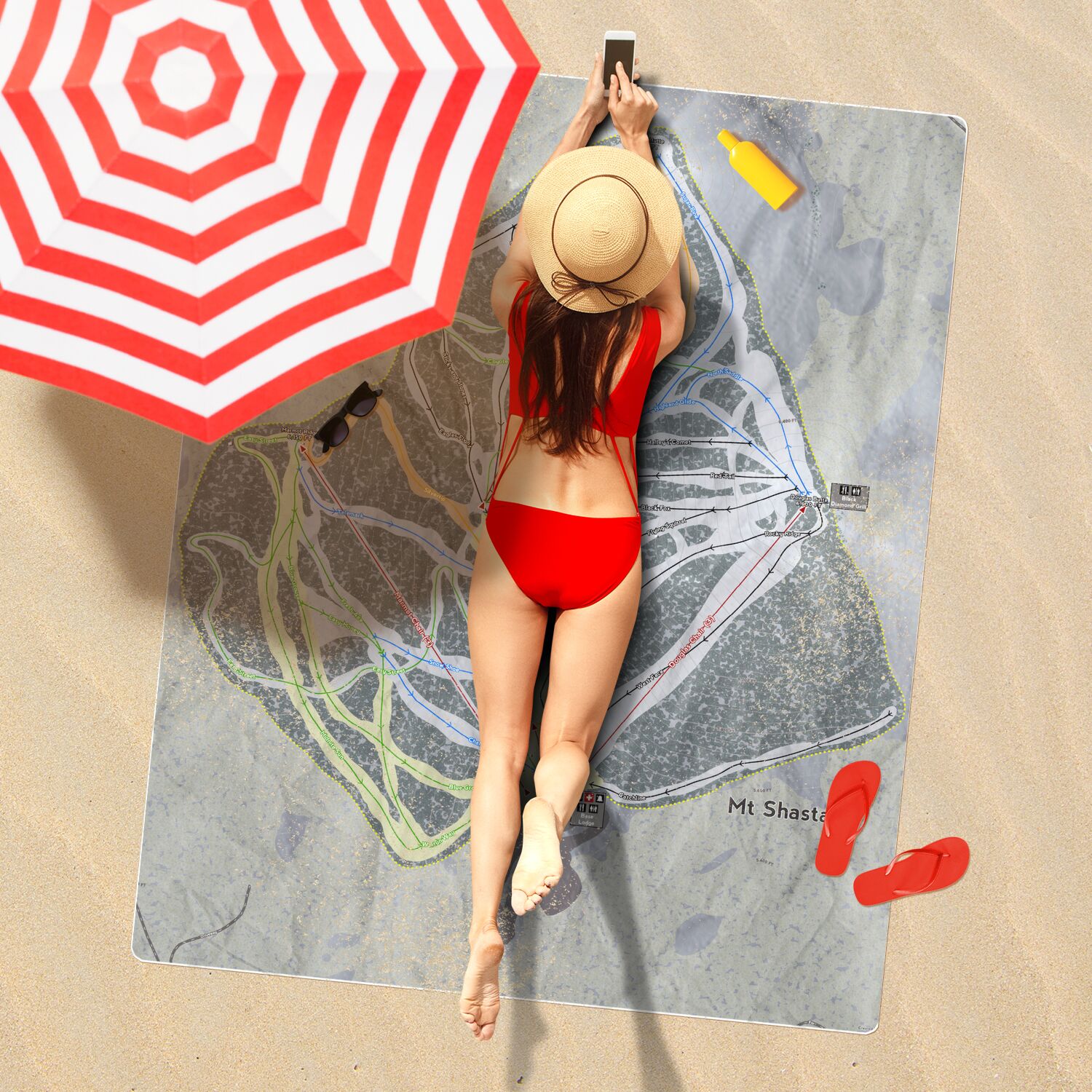 • Mt Shasta, California Ski Resort Map Printed Beach Towel