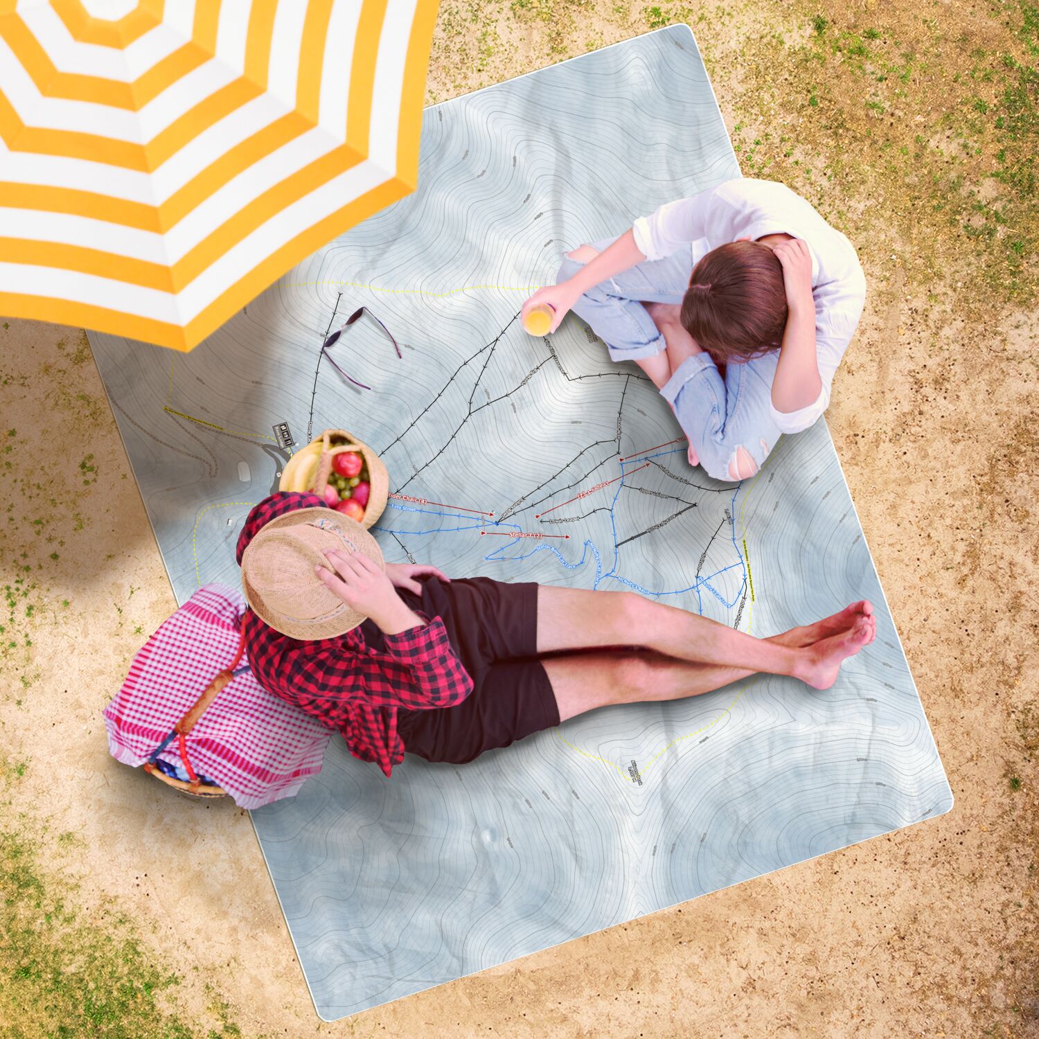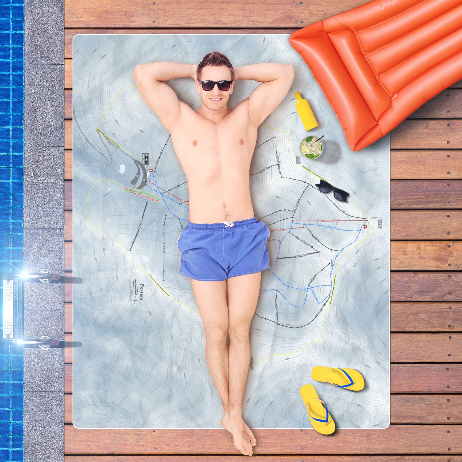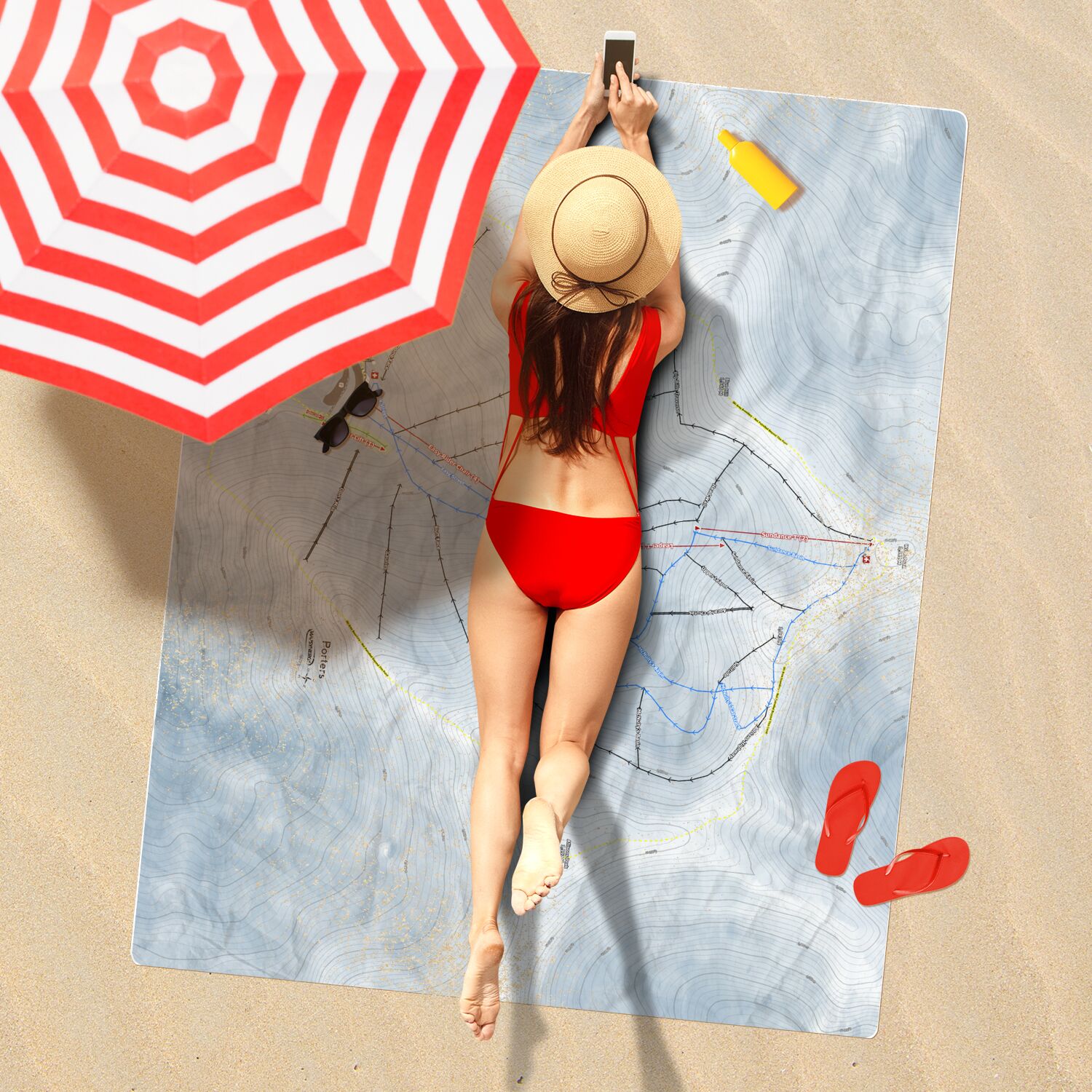• Porters, New Zealand Ski Resort Map Printed Beach Towel
