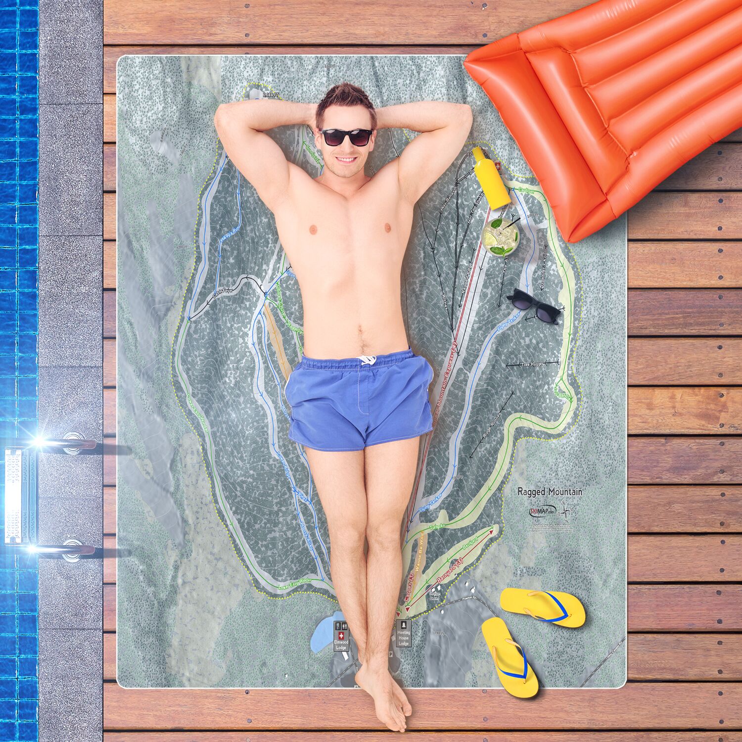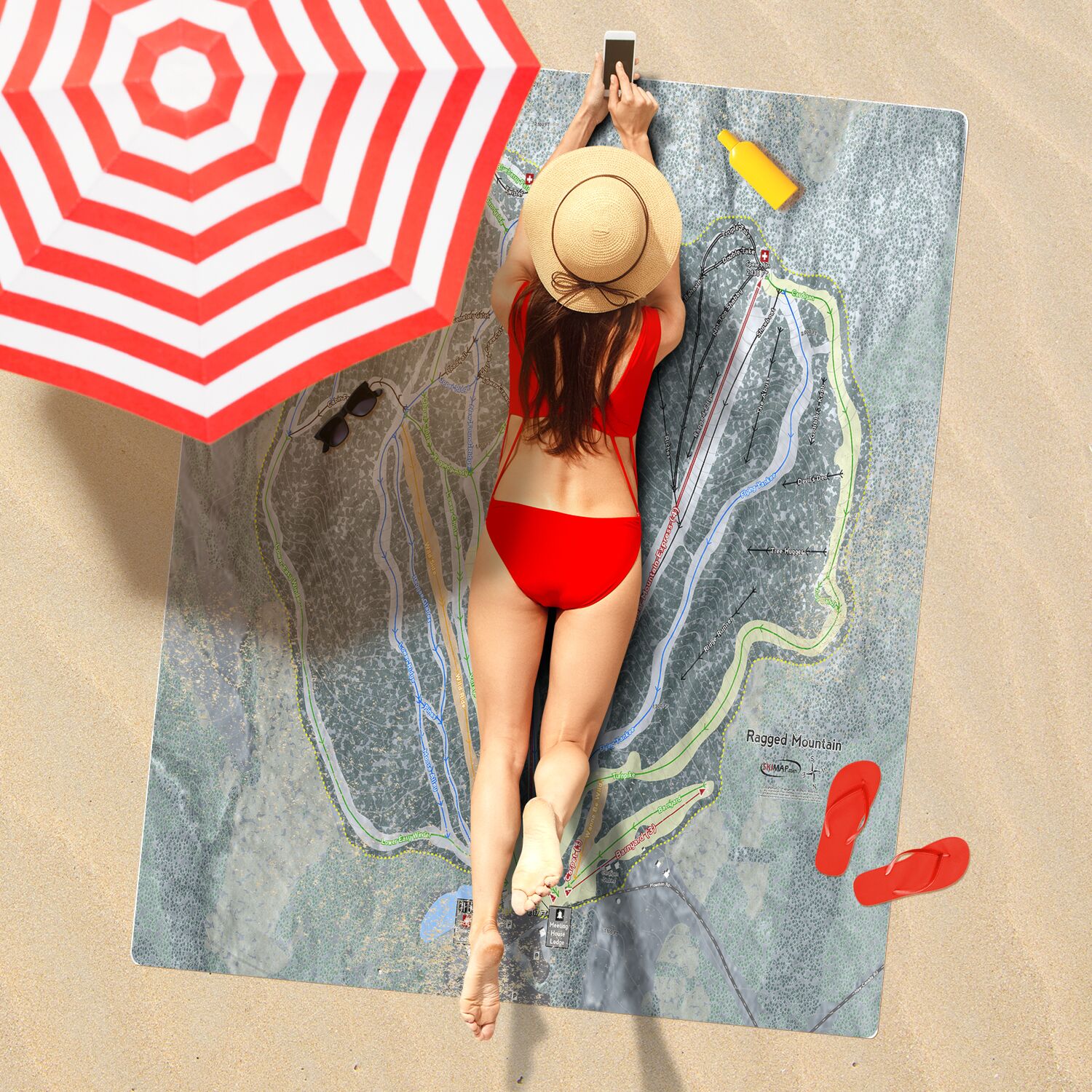 • Ragged Mountain, New Hampshire Ski Resort Map Printed Beach Towel