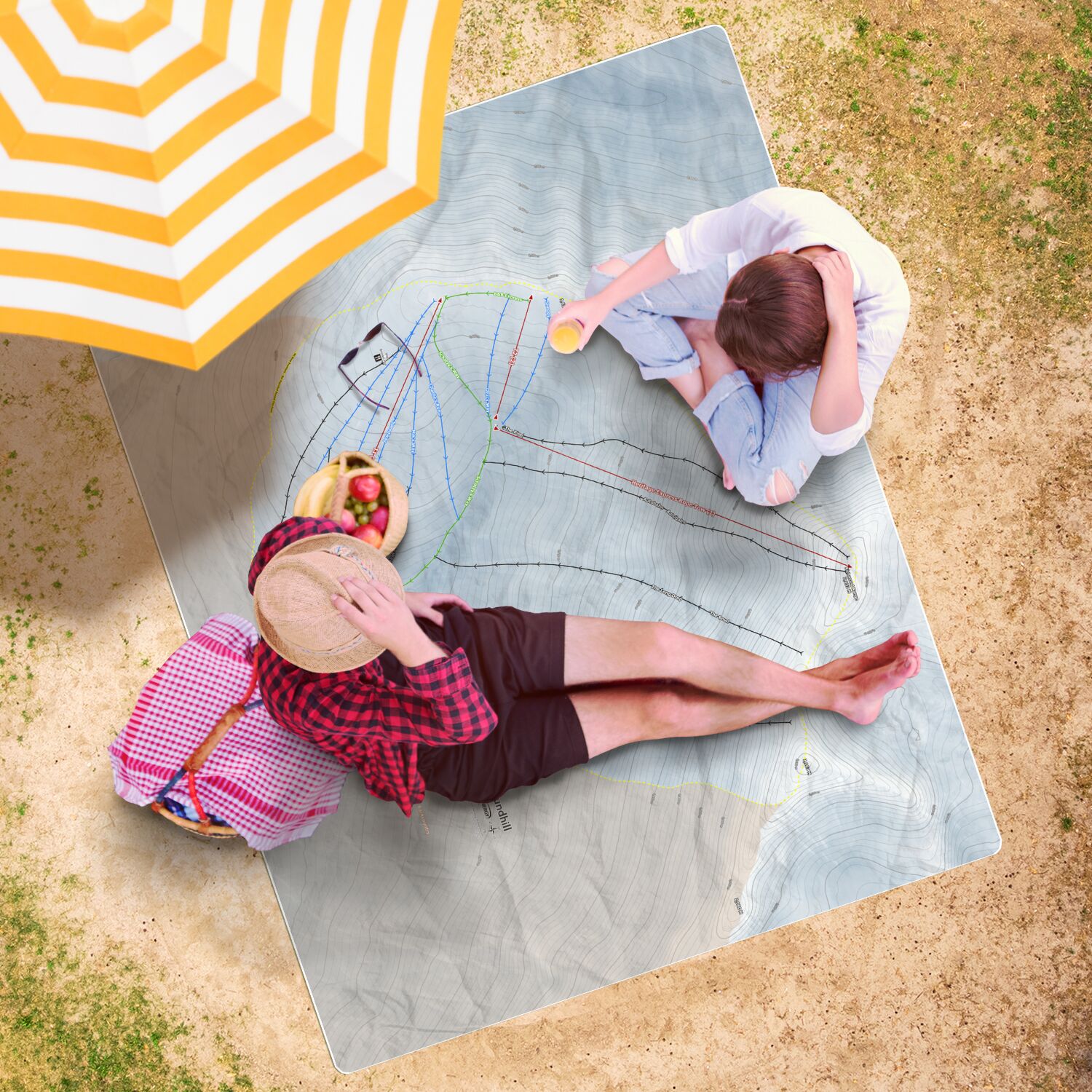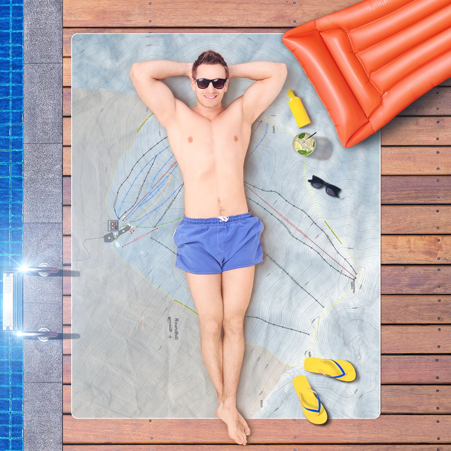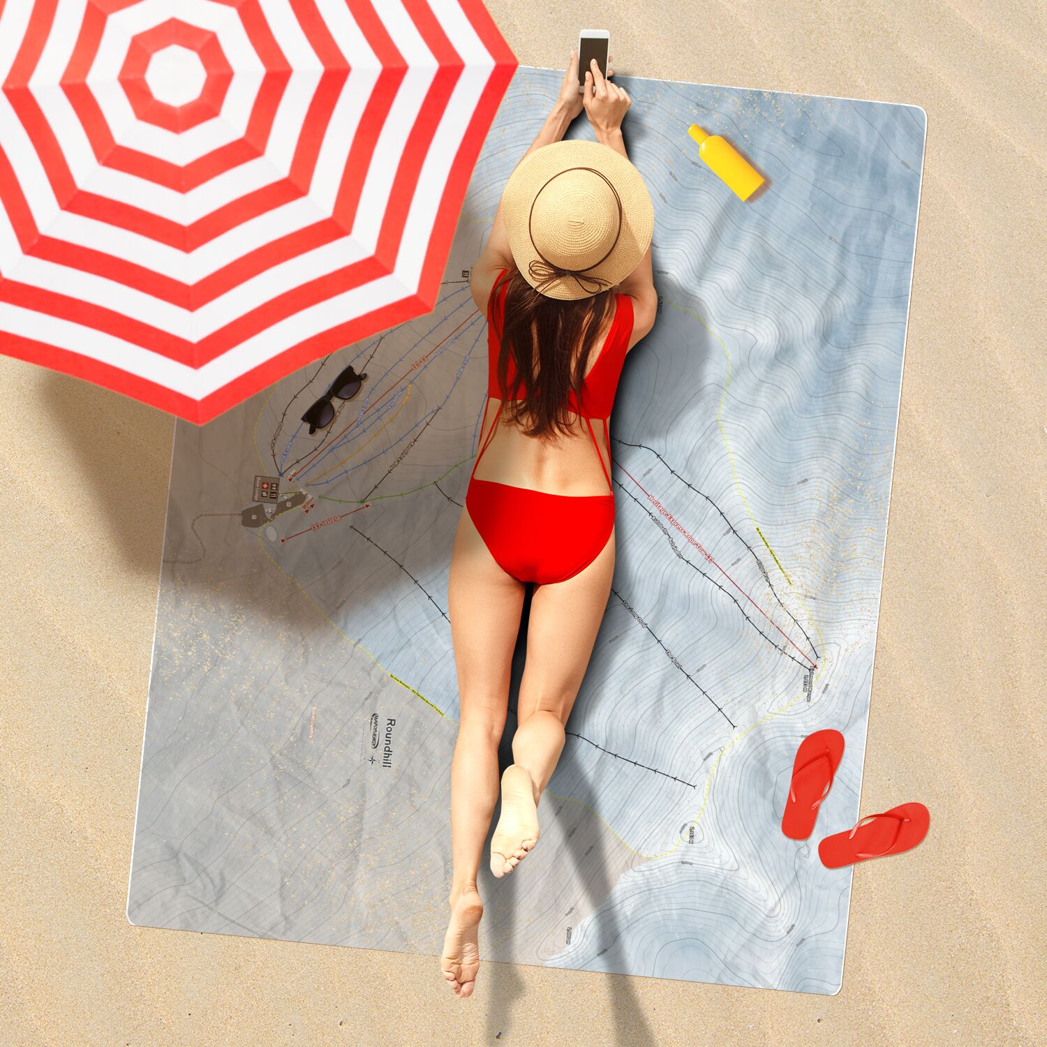 • Roundhill, New Zealand Ski Resort Map Printed Beach Towel