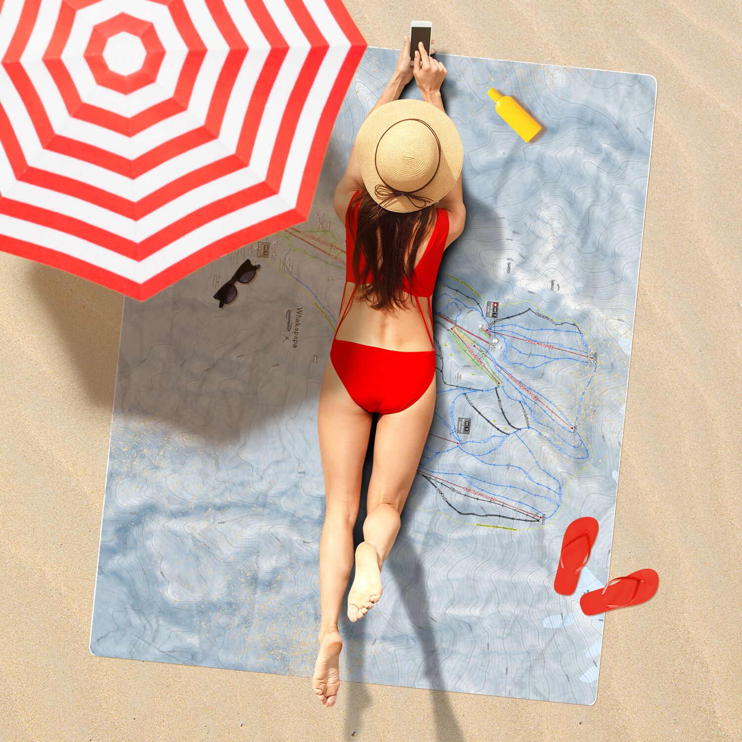 • Whakapapa, New Zealand Ski Resort Map Printed Beach Towel