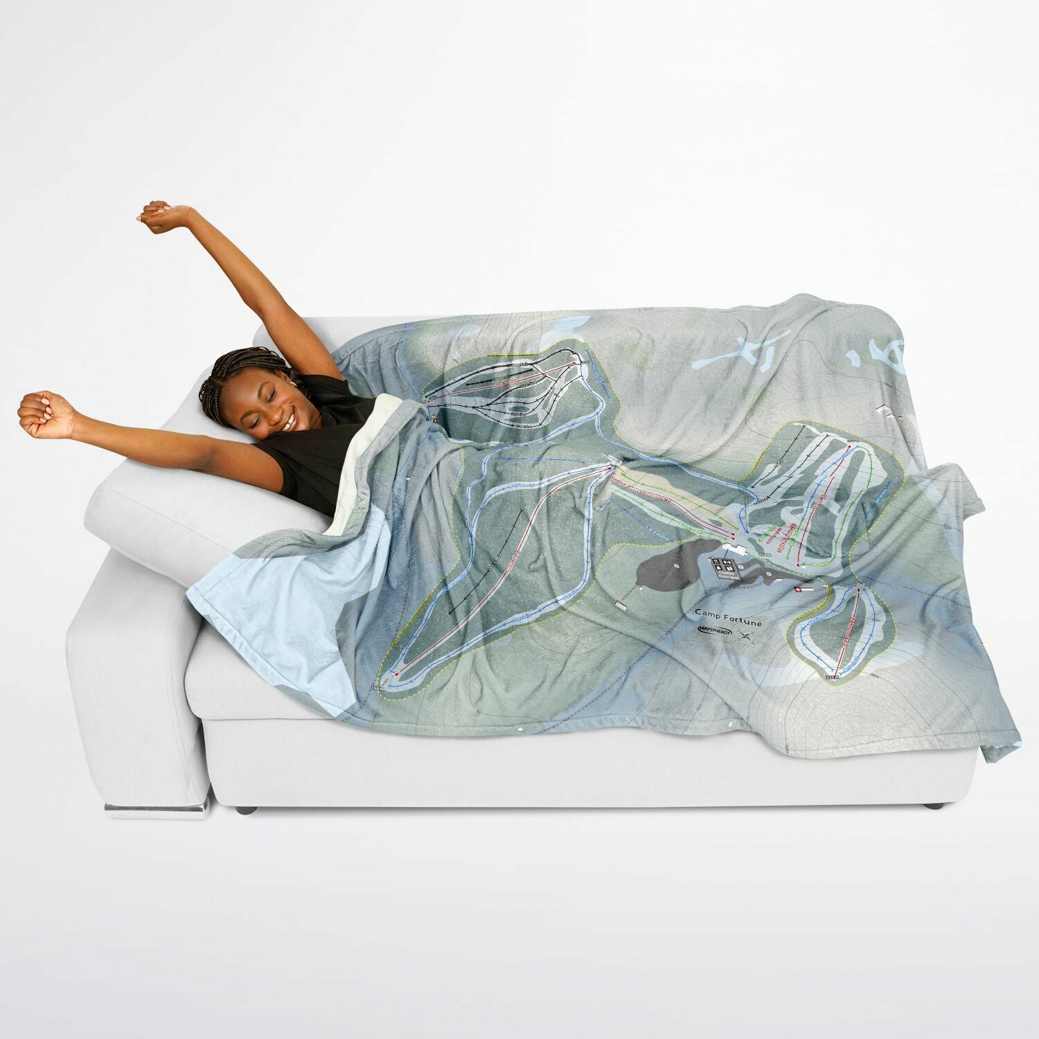 • Camp Fortune, Quebec Ski Resort Map Flannel Blanket Poncho