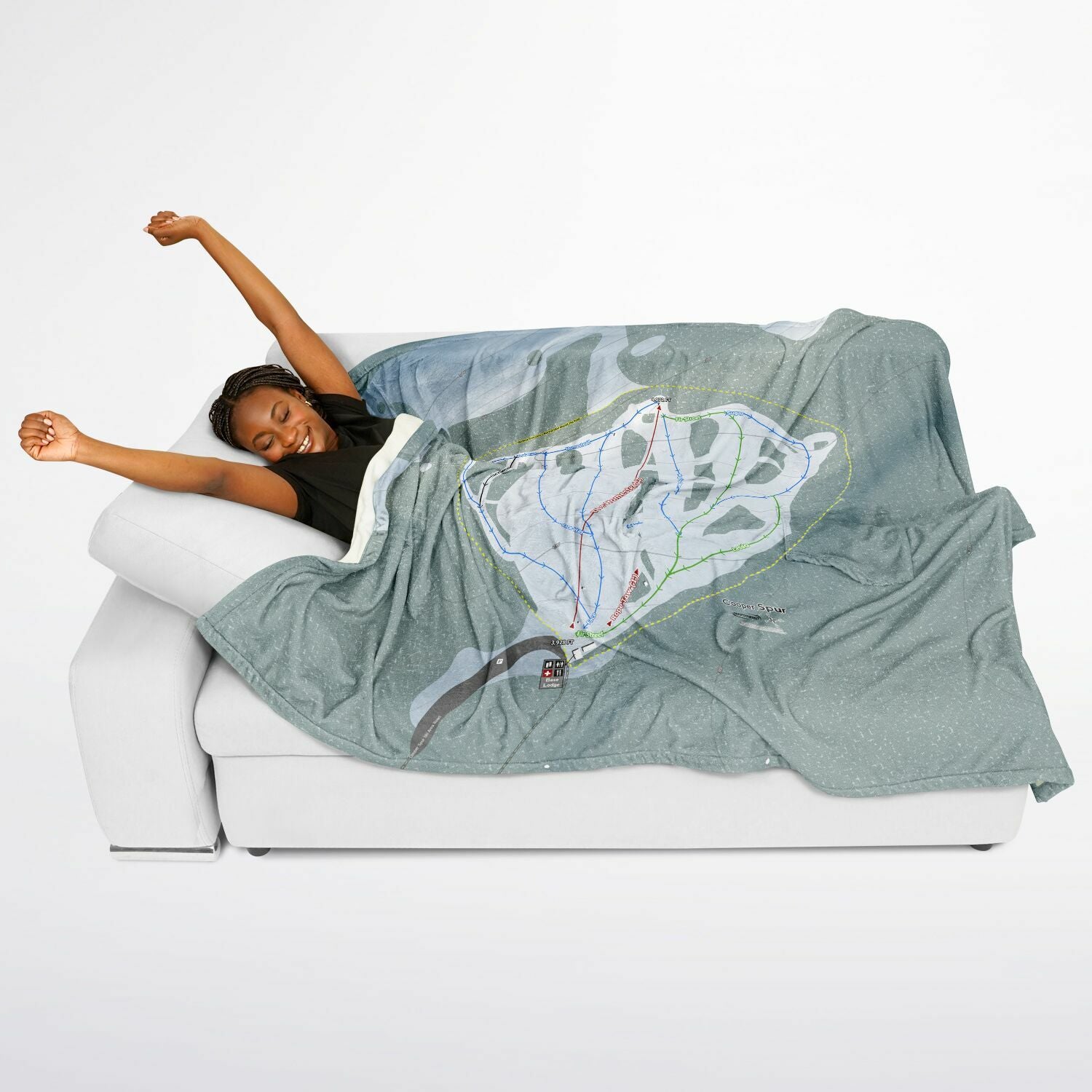 • Cooper Spur, Oregon Ski Resort Map Flannel Blanket Poncho