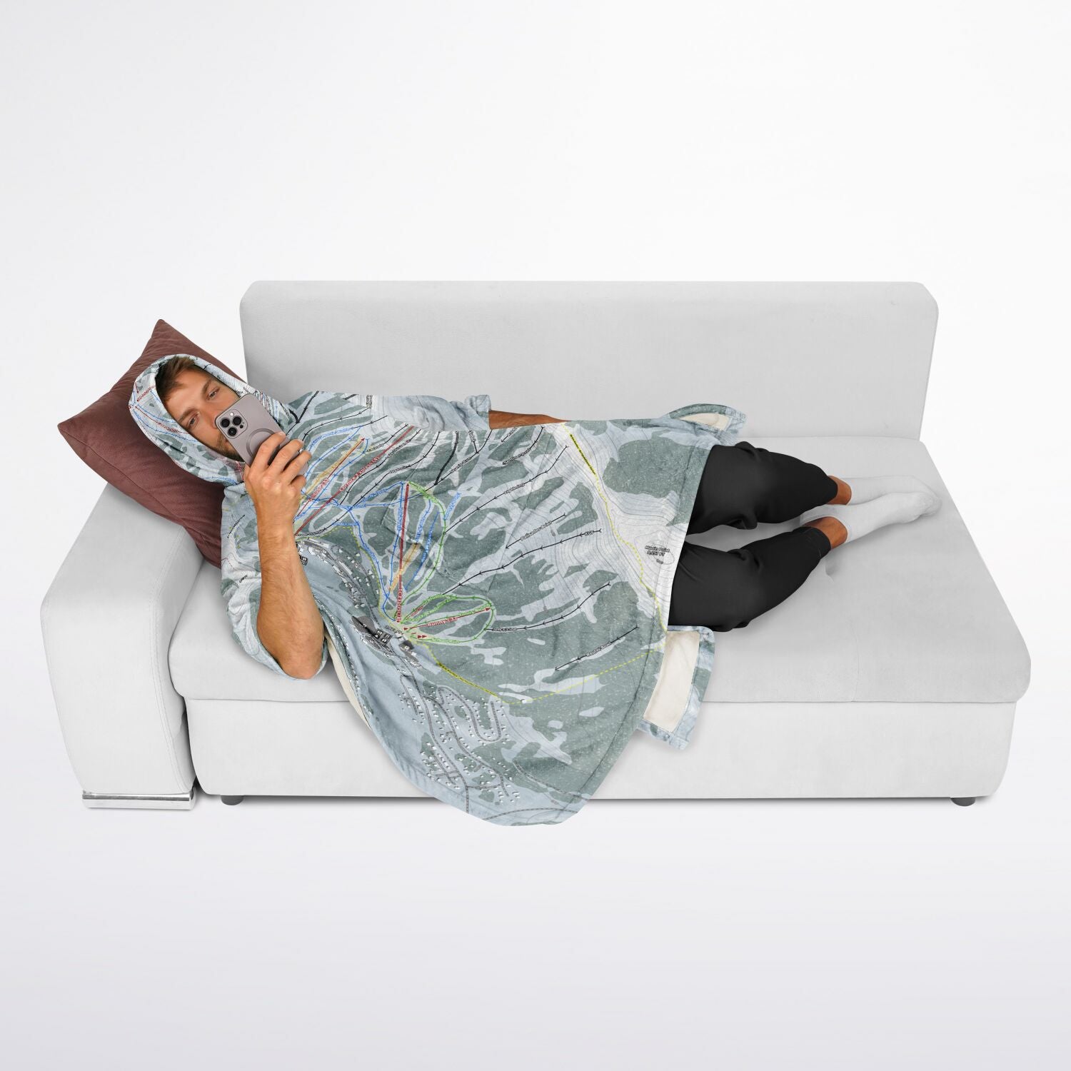 • Kirkwood, California Ski Resort Map Flannel Blanket Poncho