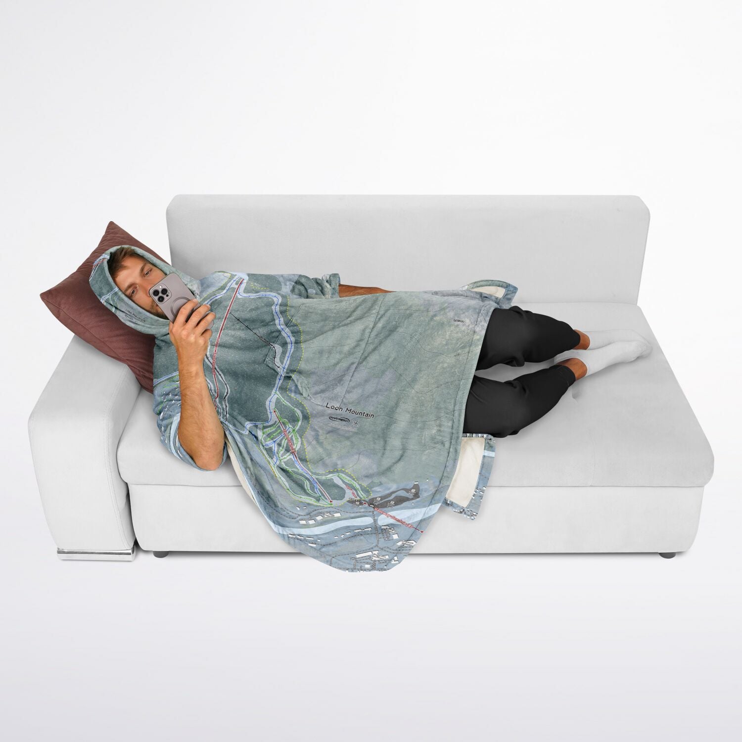 • Loon Mountain, New Hampshire Ski Resort Map Flannel Blanket Poncho