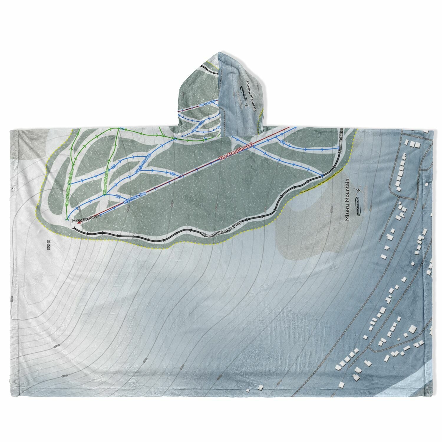 • Misery Mountain, Alberta Ski Resort Map Flannel Blanket Poncho
