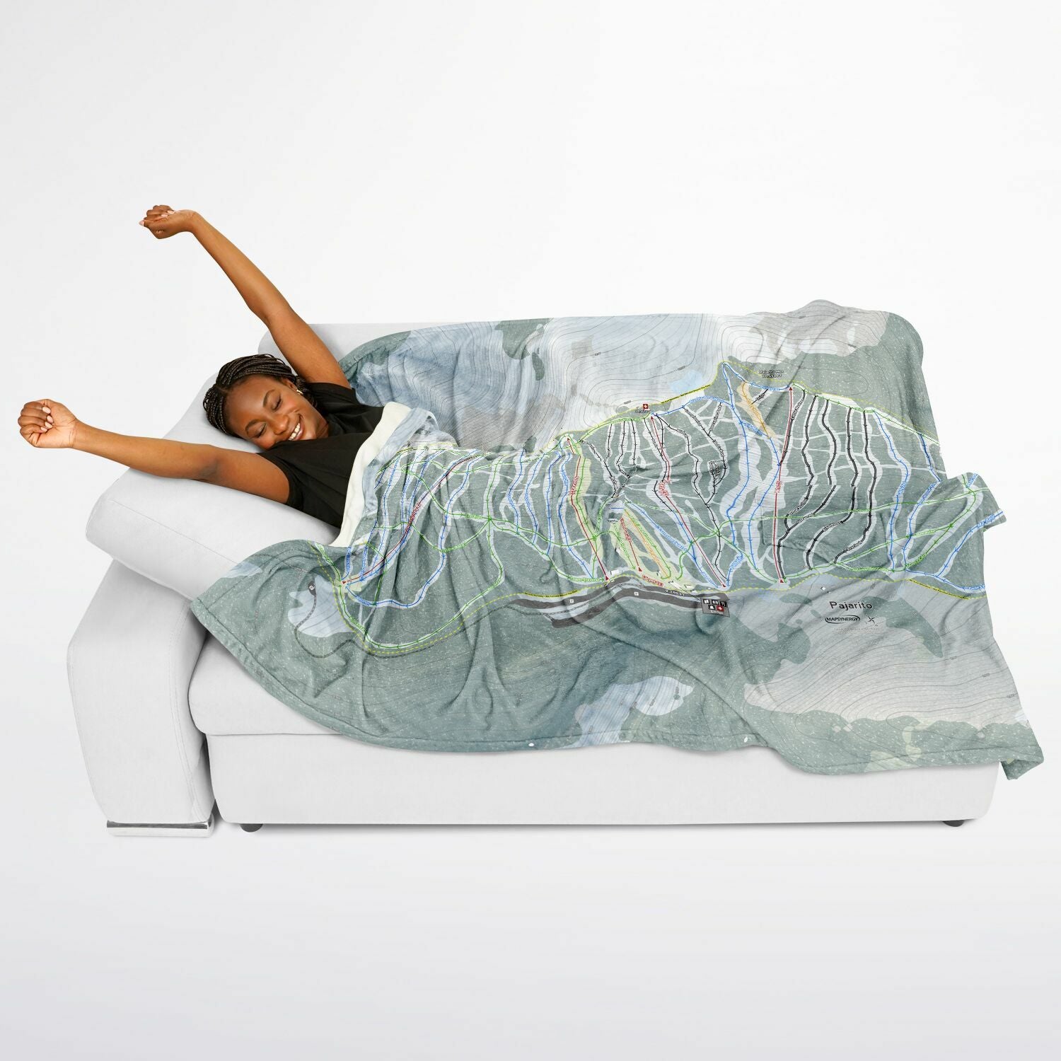 • Pajarito Mountain, New Mexico Ski Resort Map Flannel Blanket Poncho