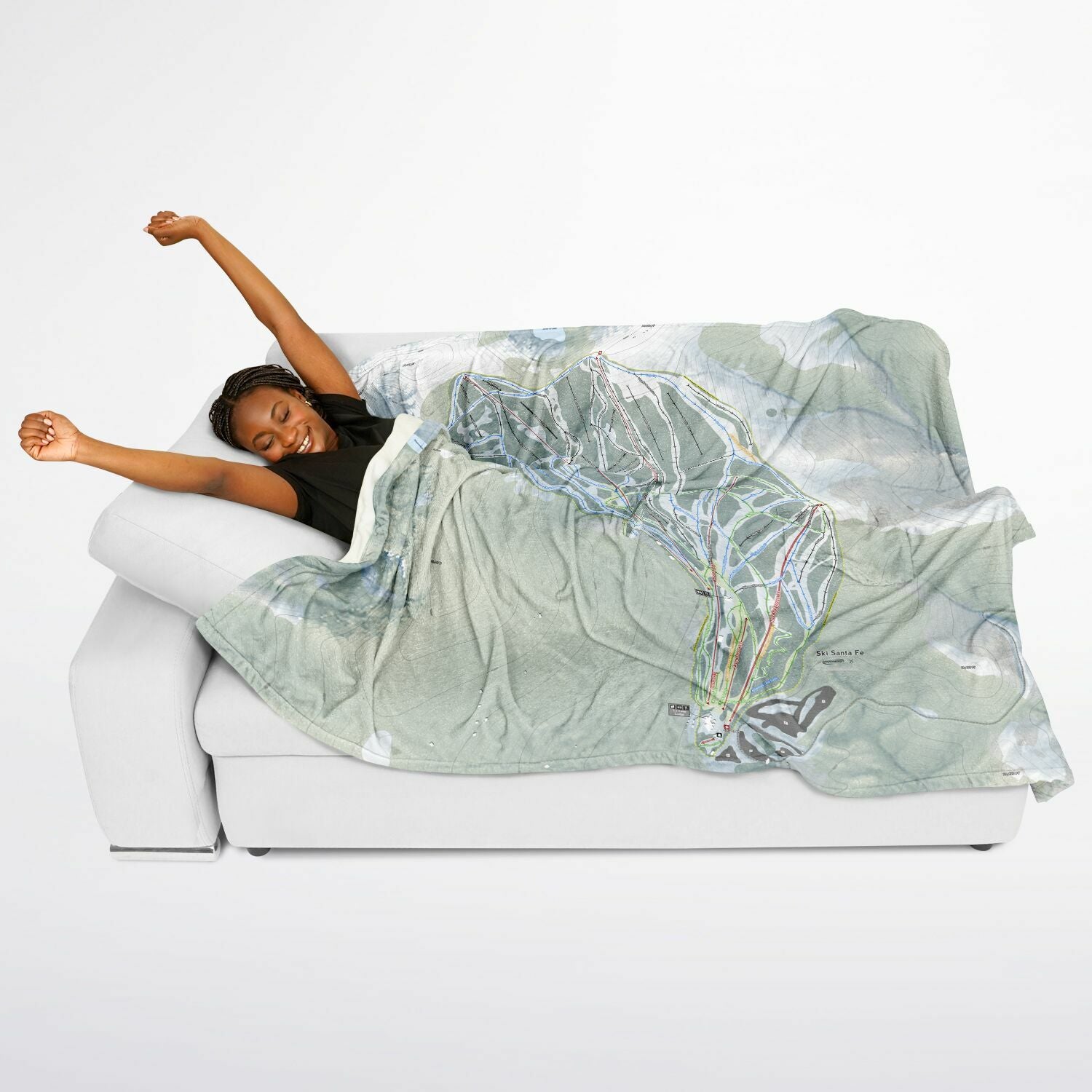• Ski Santa Fe, New Mexico Ski Resort Map Flannel Blanket Poncho