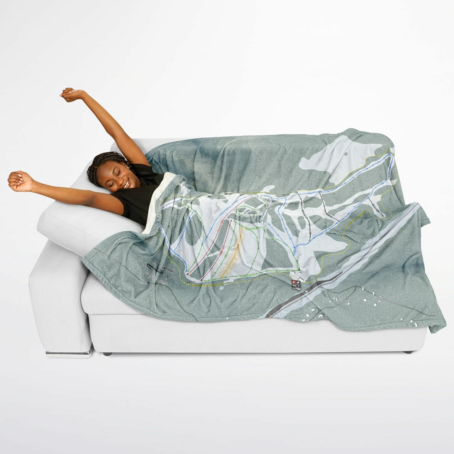 • Spout Springs, Oregon Ski Resort Map Flannel Blanket Poncho