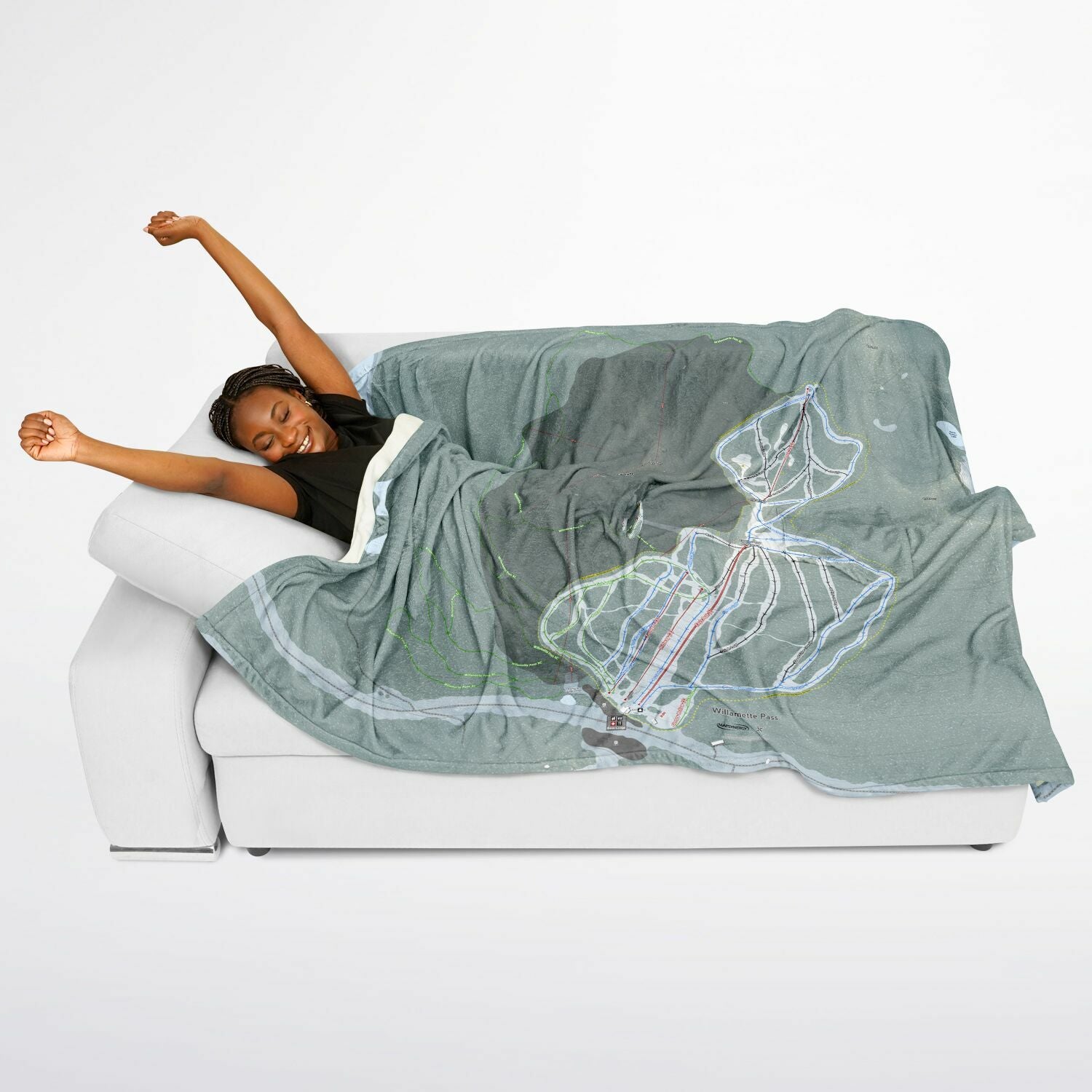 • Willamette Pass, Oregon Ski Resort Map Flannel Blanket Poncho