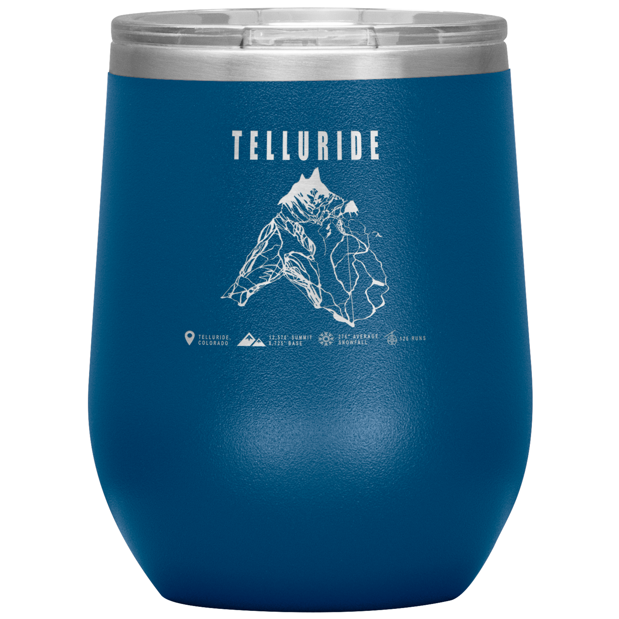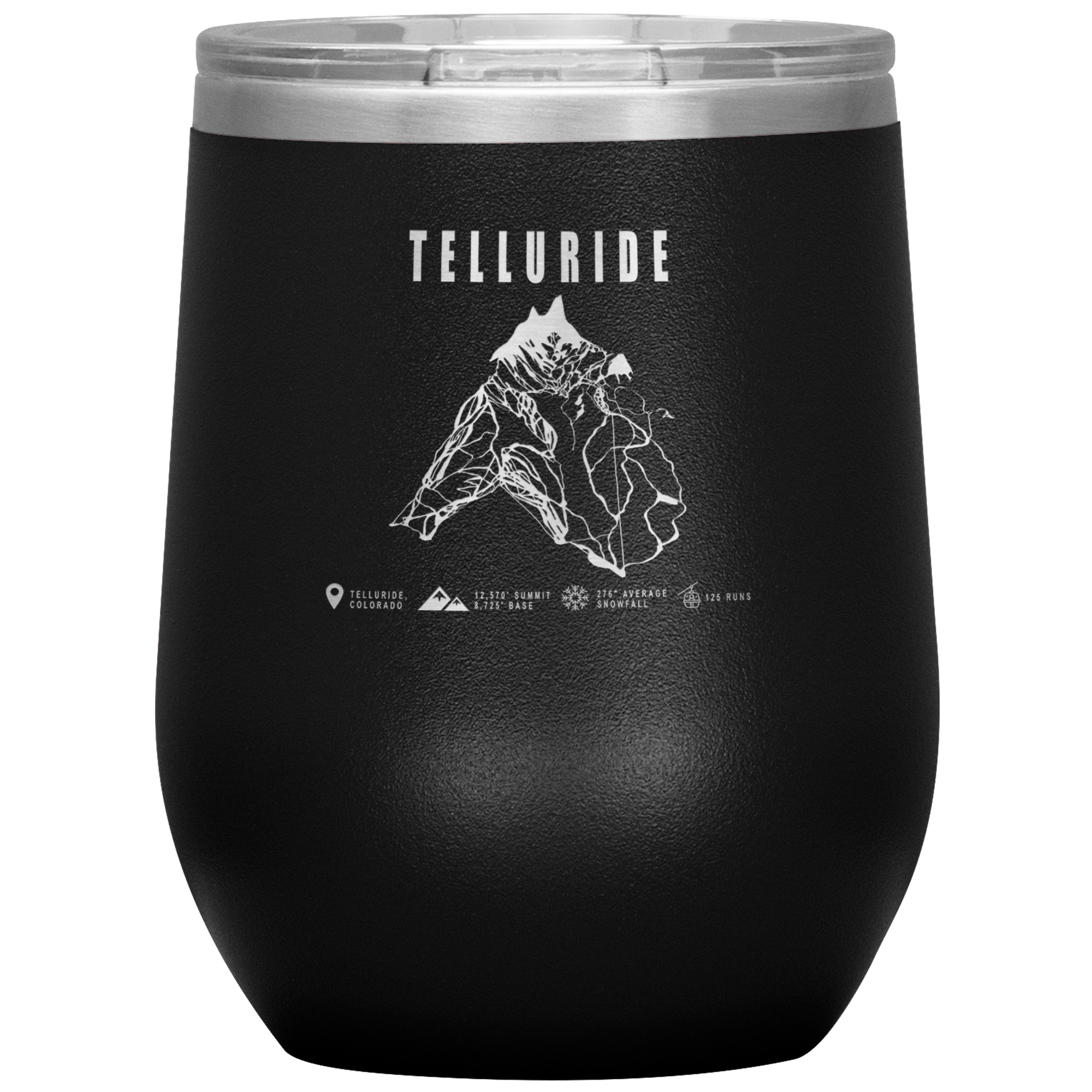 Telluride Colorado Ski Trail Map Wine 12oz Tumbler