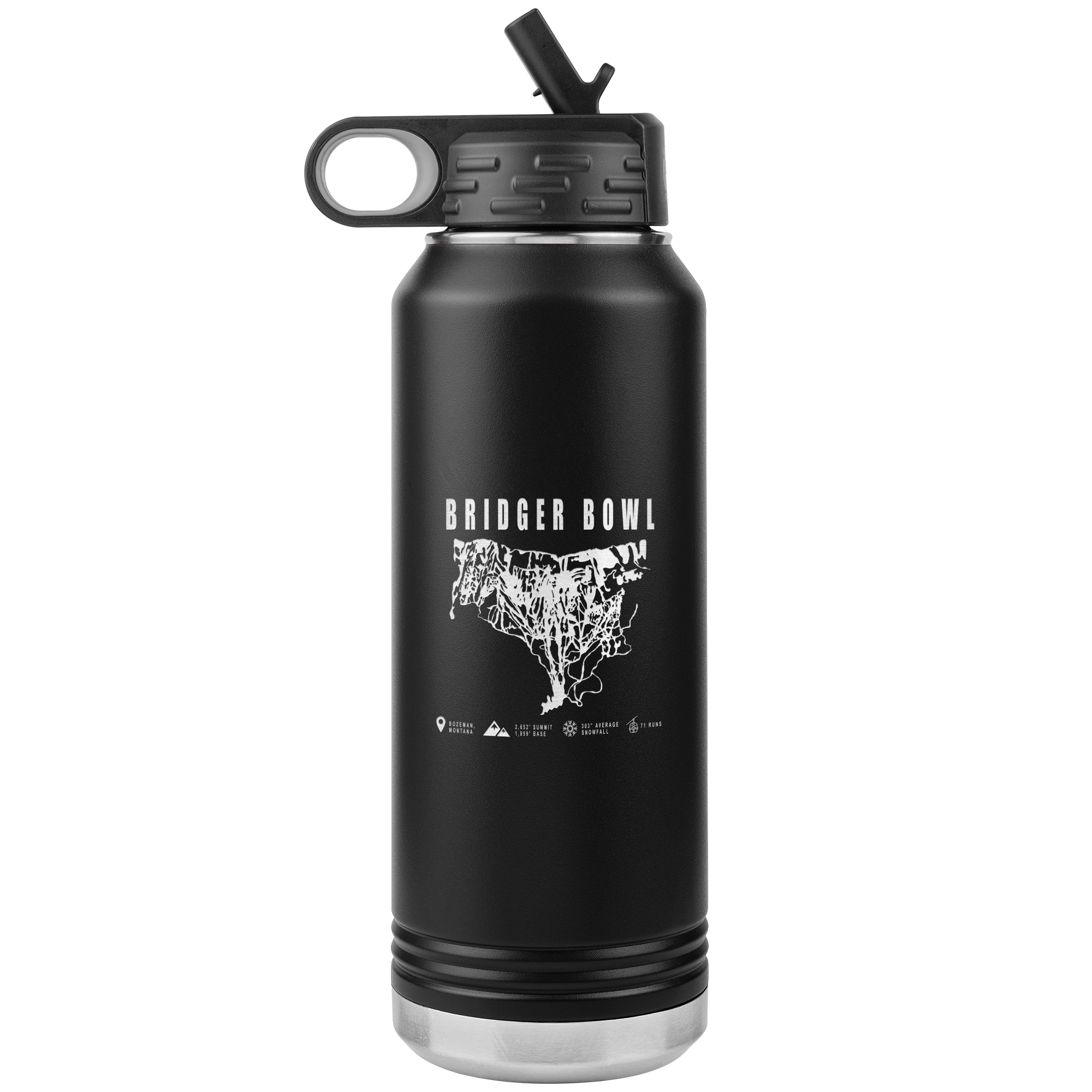 Bridger Bowl Montana Ski Trail Map 32oz Water Bottle Tumbler