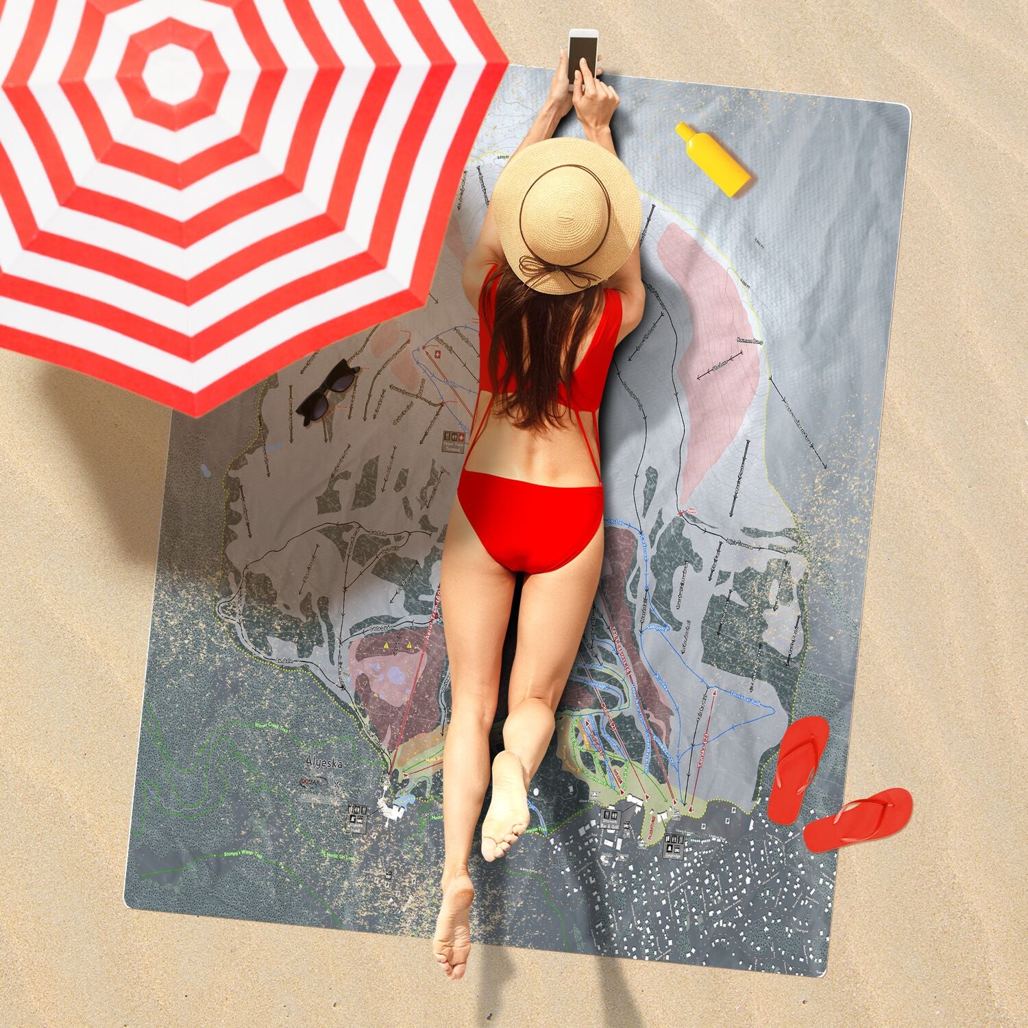 • Alyeska, Alaska Ski Resort Map Printed Beach Towel