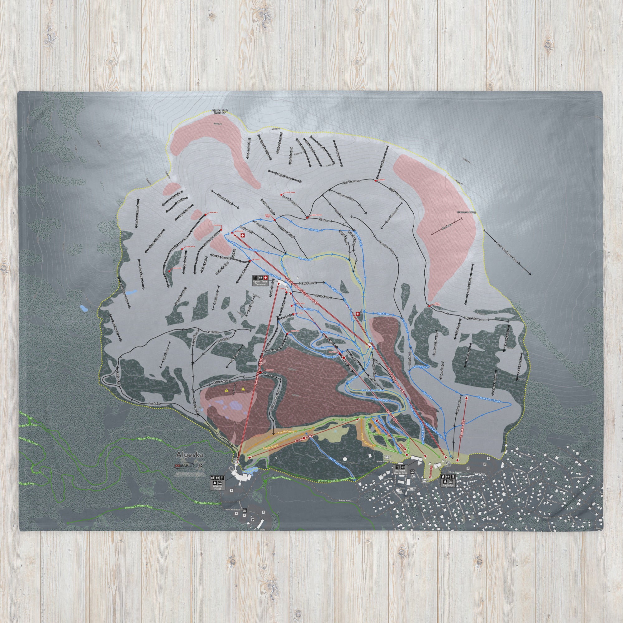 Ready to bring your home mountain to your couch? The Alyeska, Alaska Ski Trail Blanket features vivid trail maps of every run, lift, and landmark. It’s more than a blanket—it’s a connection to your favorite days on the slopes.