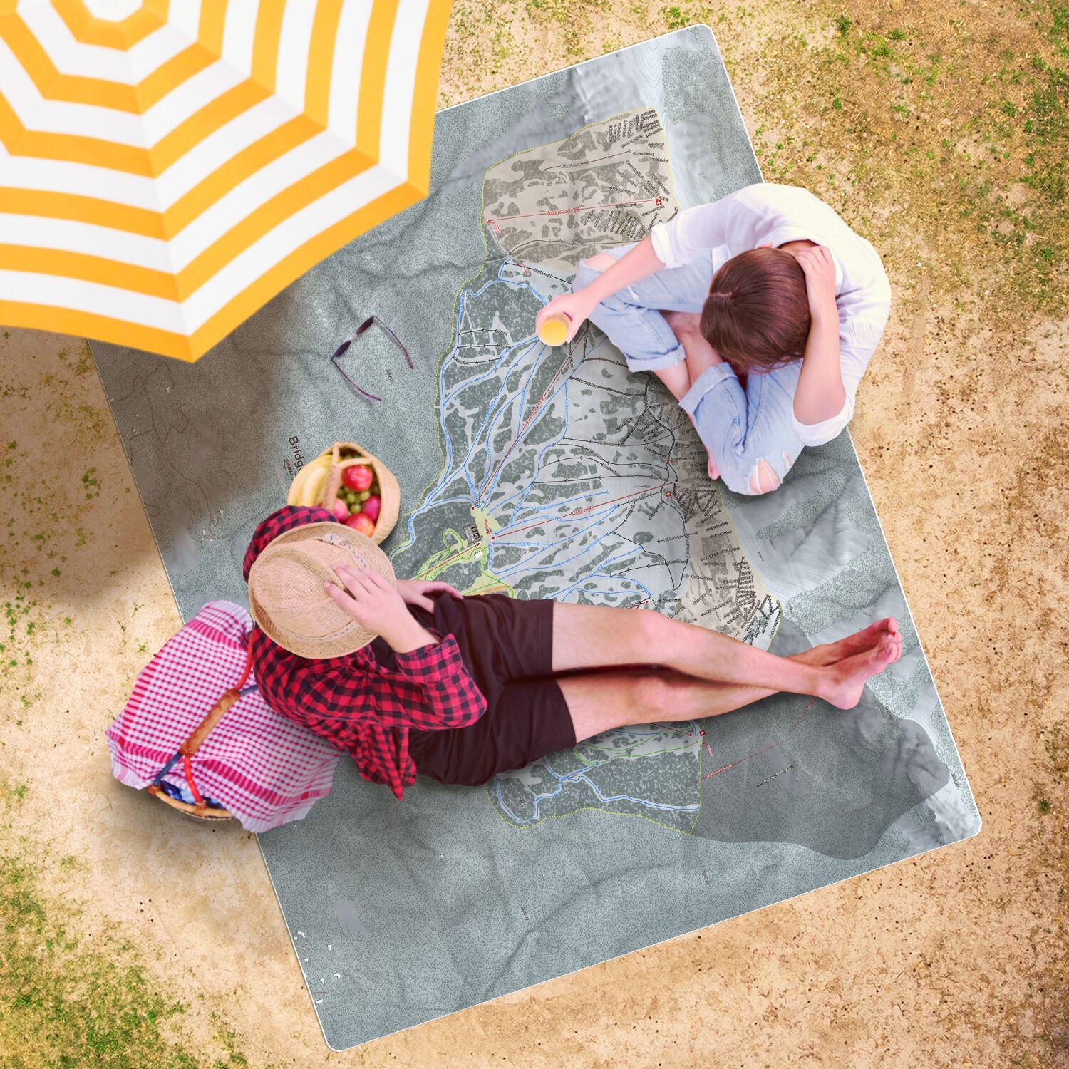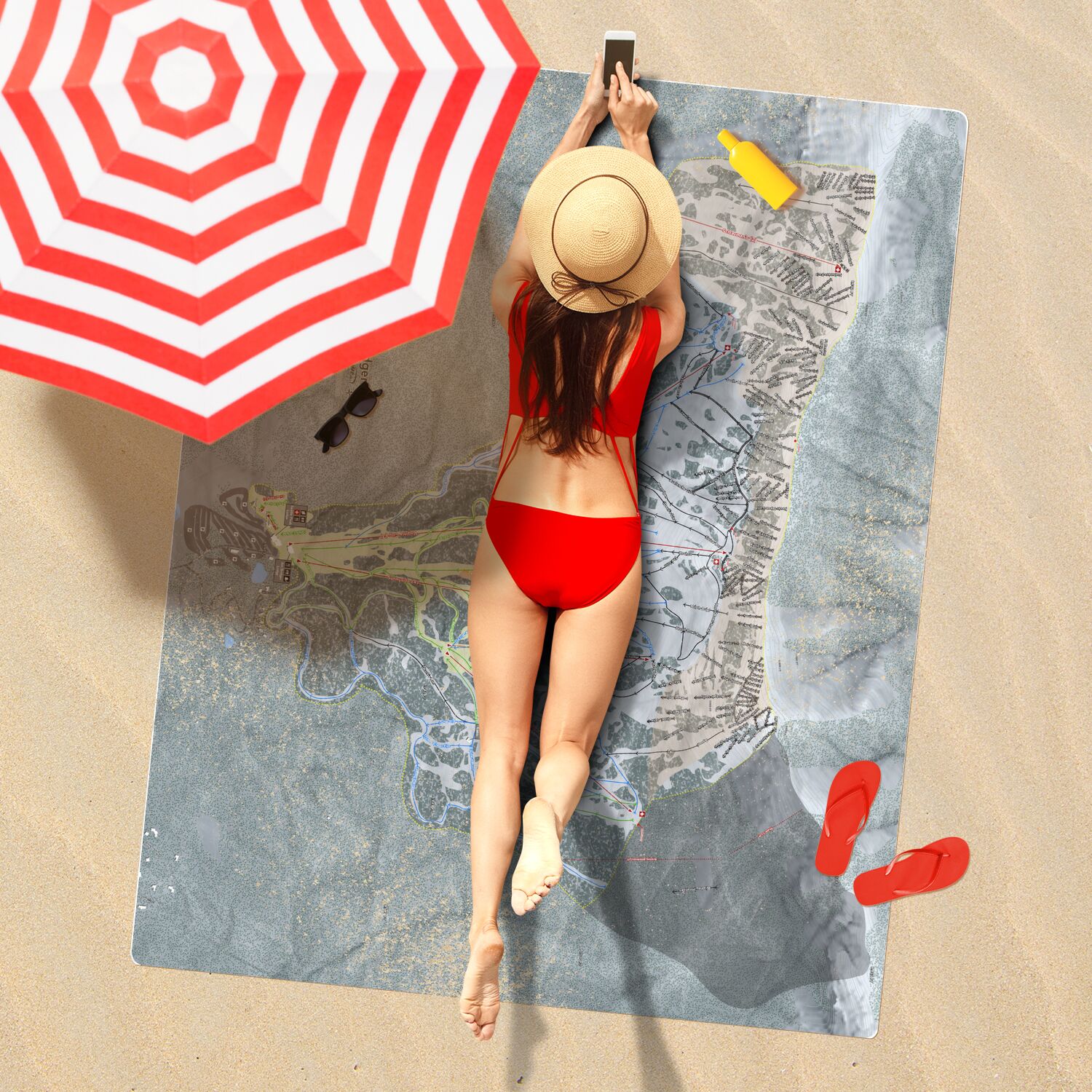 • Bridger Bowl, Montana Ski Resort Map Printed Beach Towel