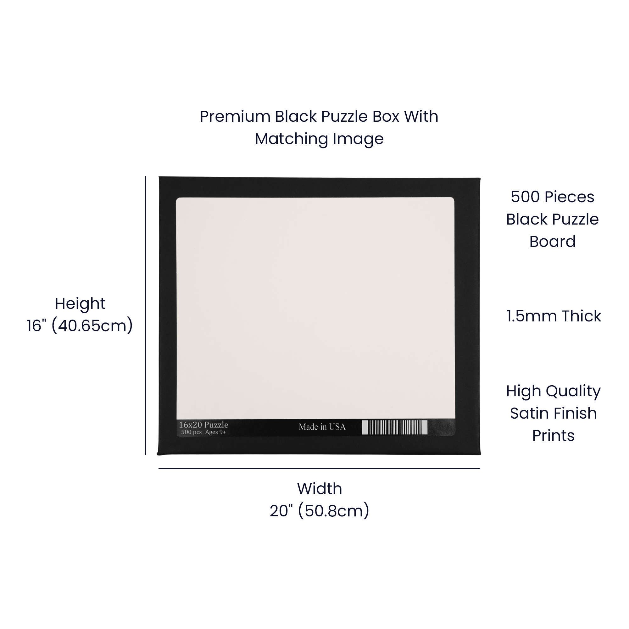 Searching for a playful way to celebrate moments? Discover Our 16" x 20" Puzzle! Ideal for creating memorable experiences, your puzzle comes in a sleek black box, showcasing the finished picture on the front. Inside, you'll find 500 high-quality, satin-finished pieces featuring your unique design. Turn downtime into joyful moments with this enjoyable puzzle, perfect for adding fun to any gathering.