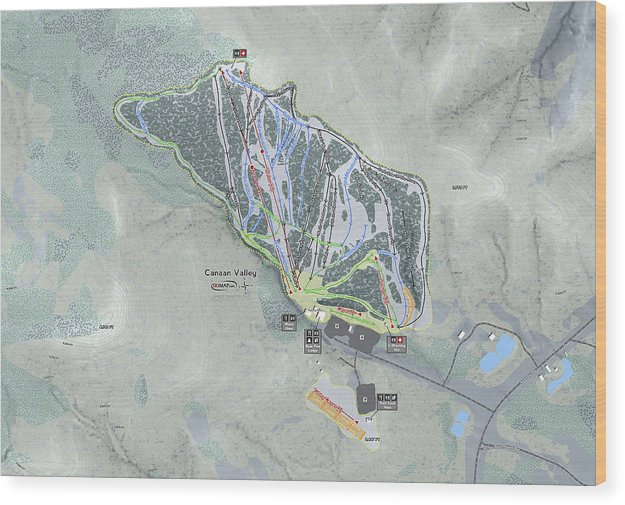 Canaan Valley Ski Resort Map wood print by Powder Addicts.   Bring your artwork to life with the texture and added depth of a wood print. Your image gets printed directly onto a sheet of 3/4" thick maple wood. There are D-clips on the back of the print for mounting it to your wall using mounting hooks and nails (included).