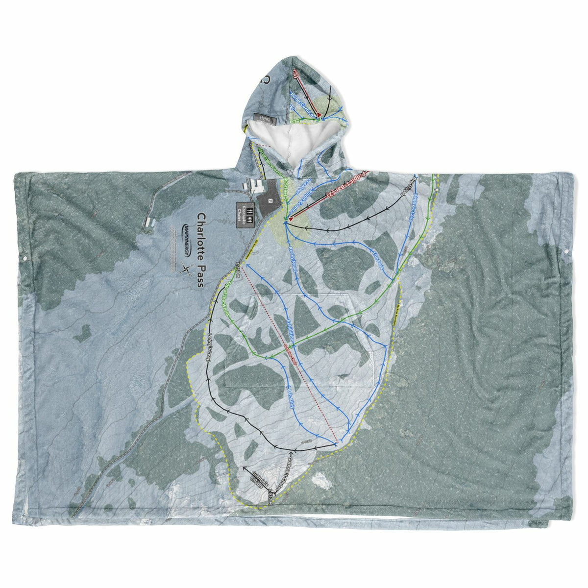 • Charlotte Pass, Australia Ski Resort Map Flannel Blanket Poncho