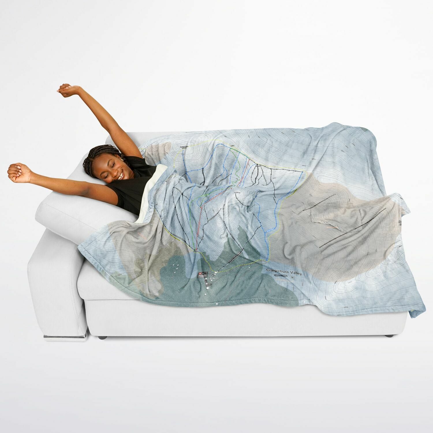 • Craigieburn Valley, New Zealand Ski Resort Map Flannel Blanket Poncho